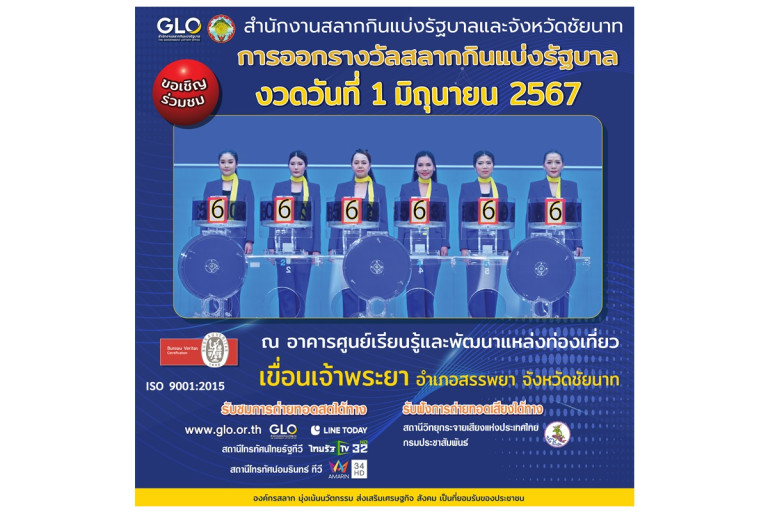 พ.ท.หนุน ศันสนาคม ผู้อำนวยการสำนักงานสลากกินแบ่งรัฐบาล เปิดเผยว่า ในการออกรางวัลงวดวันที่ 1 มิถุนายน 2567 นี้ สำนักงานสลากกินแบ่งรัฐบาลจะเดินทางไปออกรางวัลสลากสัญจร ณ อาคารศูนย์เรียนรู้และพัฒนาแหล่งท่องเที่ยว เขื่อนเจ้าพระยา อำเภอสรรพยา จังหวัดชัยนาท เพื่อเปิดโอกาสให้ประชาชนในต่างจังหวัดได้เห็นขั้นตอนและวิธีการตลอดจนอุปกรณ์ที่ใช้ในการออกรางวัลด้วยตนเอง จะได้ไม่หลงเชื่อข่าวลือเรื่องเลขเด็ดจากกลุ่มมิจฉาชีพที่ทำการหลอกลวงต้มตุ๋น ผ่านทางสังคมออนไลน์ และการส่งจดหมายแอบอ้างว่าสามารถให้ตัวเลขที่จะออกรางวัลได้ สำหรับการออกรางวัลครั้งนี้ ผู้ว่าราชการจังหวัดชัยนาท ให้เกียรติเป็นประธานกรรมการออกรางวัล รวมทั้งข้าราชการระดับสูง ผู้นำชุมชนและผู้แทนสื่อมวลชนในพื้นที่ร่วมเป็นคณะกรรมการออกรางวัล โดยจะเชิญข้าราชการหรือบุคลากรของจังหวัดร่วมทำหน้าที่หมุนวงล้อสลับกับพนักงานหมุนวงล้อของสำนักงานสลากกินแบ่งรัฐบาลด้วย สำหรับประชาชนที่สนใจสามารถเข้าชมการออกรางวัลได้ด้วยตนเองโดยไม่มีค่าใช้จ่าย พร้อมนำบัตรประจำตัวประชาชนหรือบัตรที่ทางราชการออกให้แสดงในวันดังกล่าวด้วย นอกจากนี้ยังสามารถรับชมการถ่ายทอดสดได้ผ่านช่องทางต่างๆ ดังนี้