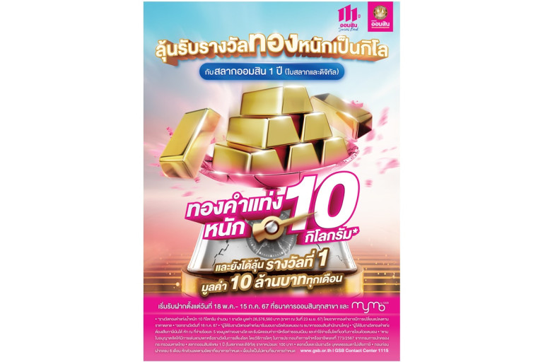 สลากออมสินพีคสุด ลุยแจกต่อเพิ่มทองคำแท่งหนัก 10 กิโลกรัม เปิดรับฝากตั้งแต่วันนี้ – 15 ก.ค. 67 จับรางวัลผู้โชคดี 16 ก.ค. 67