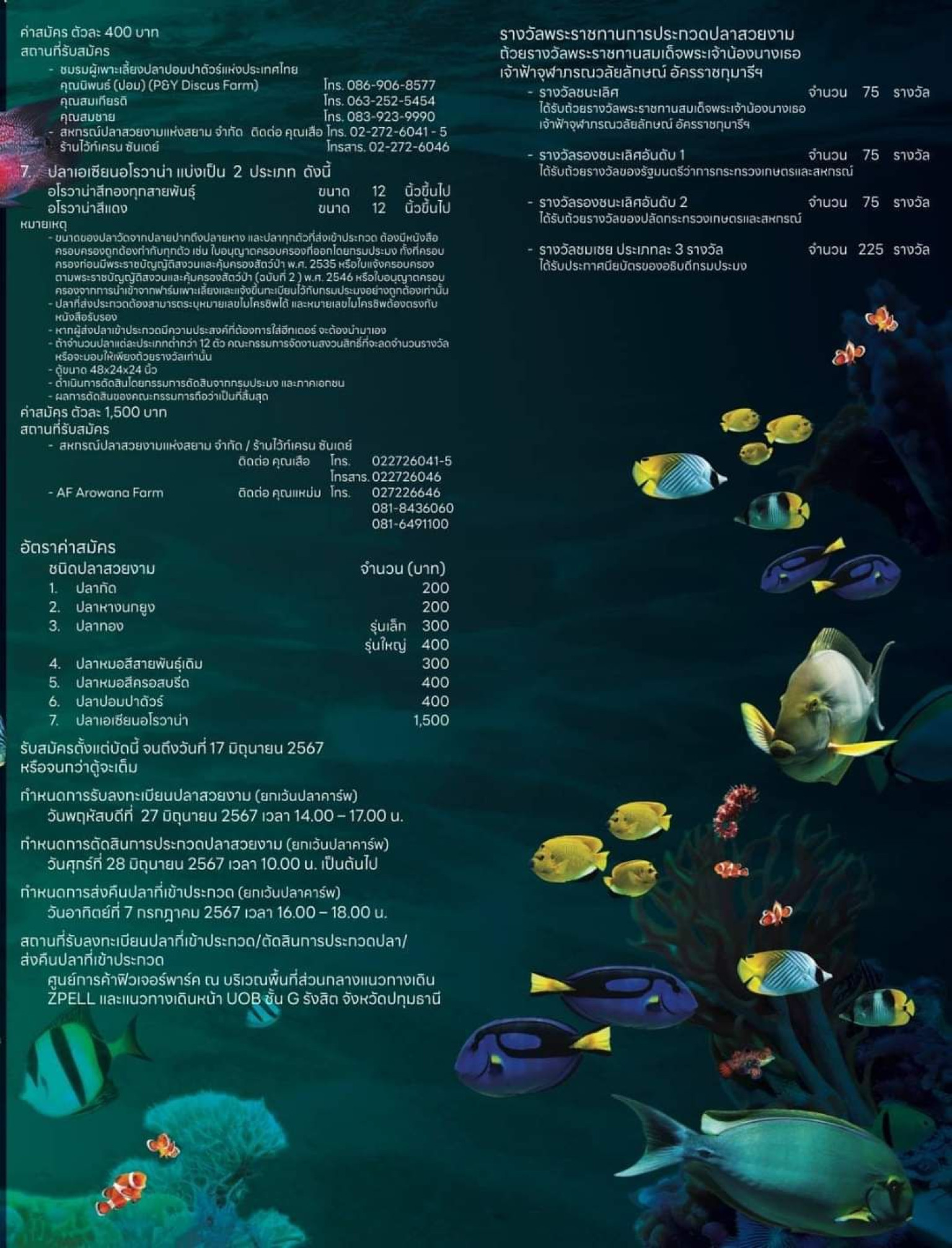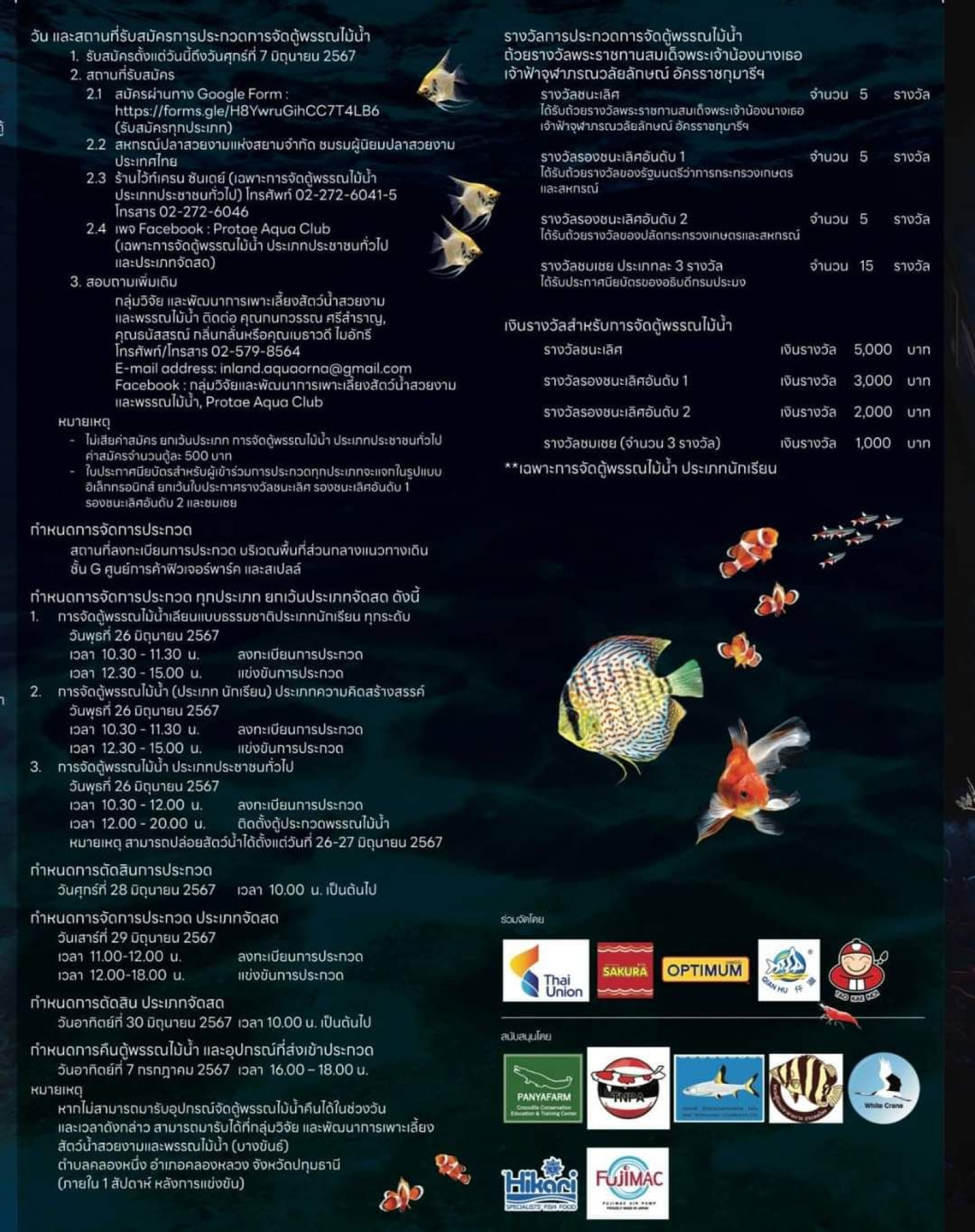 กรมประมง เชิญชวนผู้สนใจเข้าร่วมประกวดปลาสวยงามและการจัดตู้พรรณไม้น้ำ งานประมงน้อมเกล้าฯ ครั้งที่ 34 ชิงถ้วยพระราชทานสมเด็จพระเจ้าน้องนางเธอ เจ้าฟ้าจุฬาภรณวลัยลักษณ์ อัครราชกุมารี และถ้วยประทานพระเจ้าวรวงศ์เธอ พระองค์เจ้าสิริภาจุฑาภรณ์