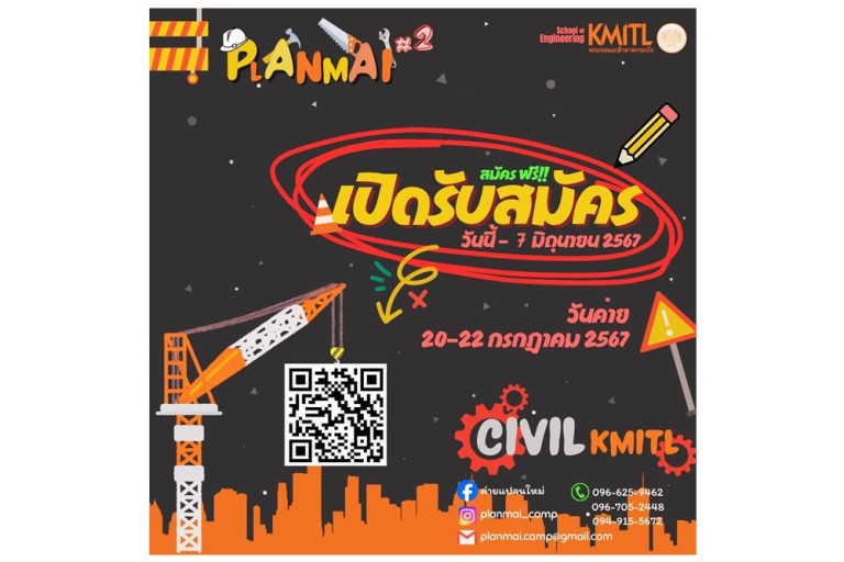 ภาควิชาวิศวกรรมโยธา คณะวิศวกรรมศาสตร์ สถาบันเทคโนโลยีเจ้าคุณทหารลาดกระบัง (สจล.) เชิญชวนน้องๆ มัธยมปลาย สายวิทย์-คณิต มาแลกเปลี่ยนประสบการณ์ใหม่ๆ เกี่ยวกับศาสตร์ด้านวิศวกรรมโยธา เรียนรู้ในห้องปฏิบัติการ(Lab) การ workshop และกิจกรรมอื่นๆ อีกมากมายจากรุ่นพี่วิศวกรรมโยธาลาดกระบัง พร้อมเยี่ยมชมไซต์ก่อสร้างจริง ซึ่งกิจกรรมจัดขึ้นในรูปแบบ on-site เพื่อให้น้องๆ ได้สัมผัสและได้ลองลงมือปฏิบัติจริง ร่วมค้นหาตัวตน เสริมสร้างความรู้ใน ค่าย Planmai Camp ครั้งที่ 2