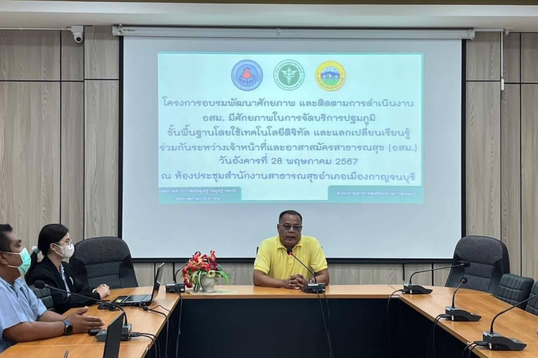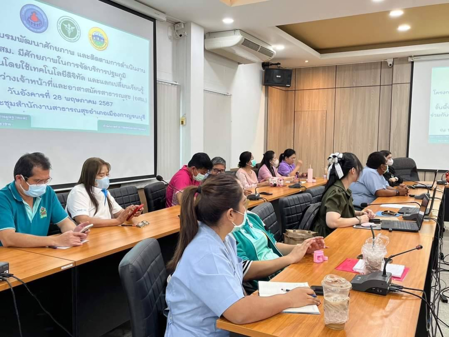 ผู้สื่อข่าวรายงานว่า เมื่อวันที่ 28 พฤษภาคม 2567 ที่ ห้องประชุมสำนักงานสาธารณสุข อำเภอเมืองกาญจนบุรี น.พ.ปริพนท์ จุลเจิม นายแพทย์สาธารณสุขจังหวัดกาญจนบุรี มอบหมายให้กลุ่มงานสาธารณสุขมูลฐานและสุขภาพภาคประชาชน สำนักงานสาธารณสุขจังหวัดกาญจนบุรี จัดการอบรมพัฒนาศักยภาพ และติดตามการดำเนินงาน อสม. มีศักยภาพในการจัดบริการปฐมภูมิ ขั้นพื้นฐานโดยใช้เทคโนโลยีดิจิทัล ประจำปีพุทธศักราช 2567