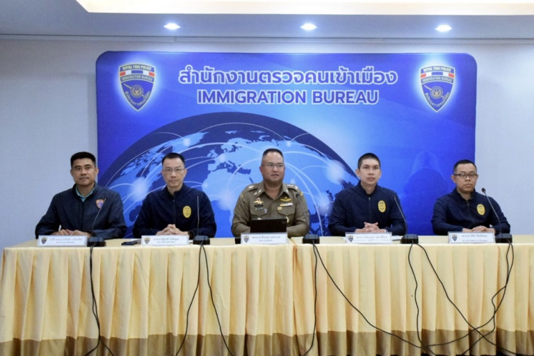 เมื่อเวลา 10.00 น. วันที่ 29 พ.ค. ที่สำนักงานตรวจคนเข้าเมือง เมืองทองธานี พล.ต.ต.พันธนะ นุชนารถ รอง ผบช.สตม. พร้อมด้วย พ.ต.อ.รัฐโชติ โชติคุณ รอง ผบก.สส.สตม. พ.ต.อ.ชิตเดชา สองห้อง รอง ผบก.สส.ภ.7 ปฏิบัติราชการ บก.สส.สตม. พ.ต.อ.ธวัชชัย นรินรัตน์ ผกก.1 บก.สส.สตม. ร่วมแถลงข่าวการจับกุมผู้ต้องหารายสำคัญจำนวน 3 คดี