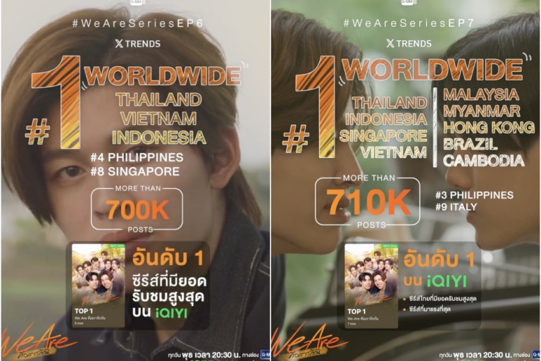 สร้างปรากฏการณ์ความฟินสนั่นโซเชียลทั่วโลก สำหรับซีรีส์วัยรุ่นกระแสปัง “We Are คือเรารักกัน” คือเรา กัดกัน จีบกัน และเรา...รักกัน จาก “GMMTV” คอนเทนต์โพรไวเดอร์ชั้นนำของเมืองไทย ที่โกยกระแสตอบรับจากแฟนๆ ทั้งชาวไทยและต่างชาติอย่างถล่มทลาย ในทุก EP ที่ออกอากาศ จนพุ่งติดเทรนด์บนโลกออนไลน์ทุกสัปดาห์ รวมถึงติดอันดับซีรีส์ยอดนิยมบน iQIYI ตั้งแต่สัปดาห์แรกที่ออกอากาศ และตอกย้ำความปังกับความฟินที่พุ่งปรี๊ดของ 8 นักแสดงวัยรุ่นมากความฝีมือ “ปอนด์-ณราวิชญ์ เลิศรัตน์โกสุมภ์, ภูวินทร์ ตั้งศักดิ์ยืน, วินนี่-ธนวินท์ ผลเจริญรัตน์, สตางค์-กิตติภพ เสรีวิชยสวัสดิ์, อู๋-ธนบูรณ์ เกียรตินิรันดร์, บูม-ธราธร จันทรวรกาญจน์, มาร์ค-ณฐริศร์ วรกรเลิศสิทธิ์, ปูน มิตรภักดี” สาดโมเมนต์วุ่นรักสุดจิ้น จนดันแฮชแท็ก #WeAreSeriesEP6 #WeAreSeriesEP7 และใน EP ล่าสุด #WeAreSeriesEP8 ติดเทรนด์โลก 3 EP. ติดหลังออนแอร์ ครองแชมป์เทรนด์ X “อันดับ 1” ของโลก และ “อันดับ 1” อีก 9 ประเทศทั่วโลก ทั้ง ไทย, อินโดนีเซีย, สิงคโปร์, เวียดนาม, โปแลนด์, มาเลเซีย, เมียนมา, กัมพูชา, บราซิล รวมถึง “อันดับ 1” ใน ฮ่องกง และติดเทรนด์ X ในอีกหลายพื้นที่ทั่วโลก ทั้งยังมียอดโพสต์ที่พูดคุยเกี่ยวกับเรื่องราวความสนุกสุดฟินที่ไต่ระดับขึ้นเรื่อยๆ กว่า 835K โพสต์ อีกด้วย