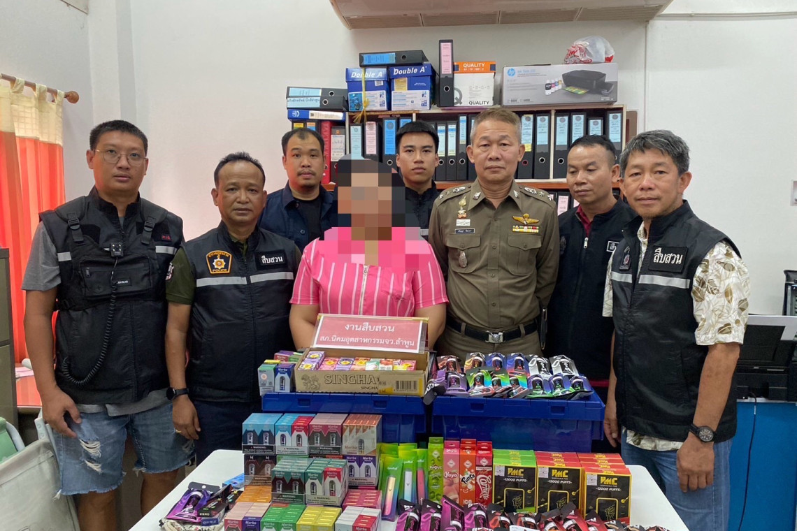 โดยการอำนวยการของ พล.ต.ต.บุณยวัต เกิดกล่ำ ผบก.ภ.จว.ลำพูน, พ.ต.อ.พงศกร รัศมีโรจน์สกุล รอง ผบก.ภ.จว.ลำพูน, พ.ต.อ.ปริญญา ชัยเววา ผกก.สภ.นิคมอุตสาหกรรม, พ.ต.อ.ดนัย ใจกล่ำ ผกก.สส.ภ.จว.ลำพูน สั่งการให้ พ.ต.ท.มรกต ศิริชัย รอง ผกก.สส.สภ.นิคมอุตสาหกรรม, พ.ต.ท.สุริยพงศ์ ร่องสุวรรณ สว.สส.สภ.นิคมอุตสาหกรรม พร้อมด้วยและชุดสืบสวน สภ.นิคมอุตสาหกรรม และ ชุดสืบสวน กก.สส.ภ.จว.ลำพูน โดยประสานการปฏิบัติกับ บก.สส.ภ.5 ร่วมกันจับกุมผู้ลักลอบจำหน่ายบุหรี่ไฟฟ้า ในพื้นที่ จ.ลำพูน