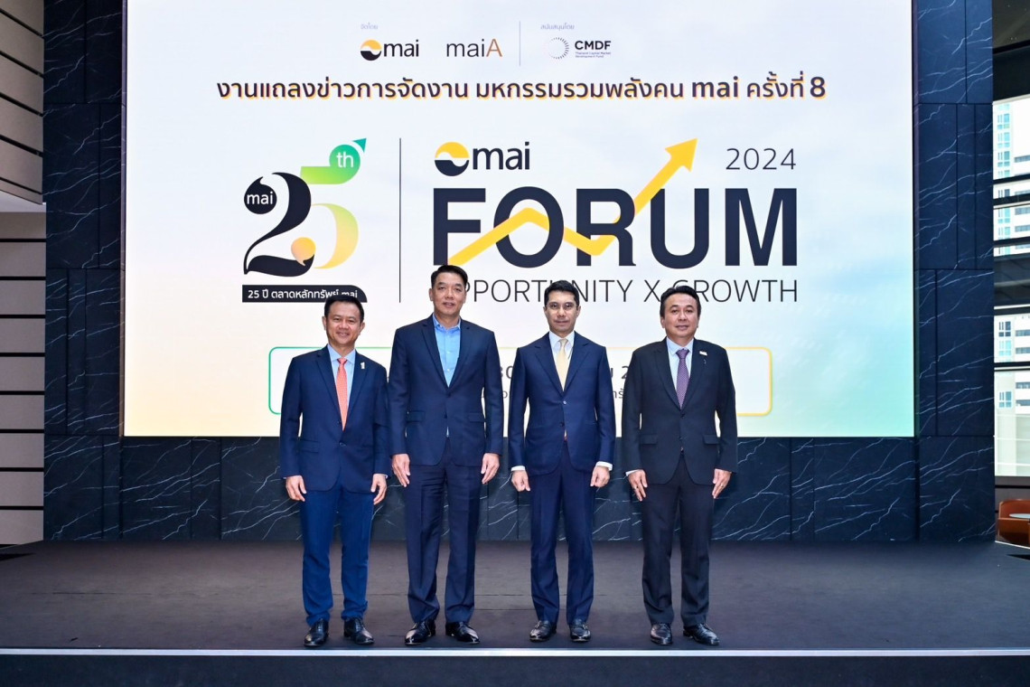 สมาคมบริษัทจดทะเบียนในตลาดหลักทรัพย์ เอ็ม เอ ไอ (maiA) ร่วมกับตลาดหลักทรัพย์ เอ็ม เอ ไอ (mai) แถลงข่าวการจัดงาน mai FORUM 2024 : มหกรรมรวมพลังคน mai ครั้งที่ 8 ภายใต้แนวคิด “25 ปี ตลาดหลักทรัพย์ mai สร้างโอกาส และการเติบโต OPPORTUNITY X GROWTH” ที่กำหนดจัดขึ้นในวันเสาร์ที่ 22 มิถุนายน 2567 เวลา 09.30 – 18.00 น. ณ ห้องบางกอกคอนเวนชั่น เซ็นเตอร์ ชั้น 22 โรงแรม เซ็นทาราแกรนด์ แอท เซ็นทรัลเวิลด์