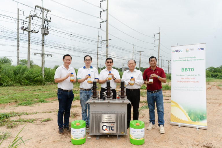 นายสุเมธ เจริญชัยเดช Central Research and Development Director บริษัท เอสซีจี เคมิคอลส์ จำกัด (มหาชน) หรือ SCGC กล่าวเสริมถึงความสำเร็จนี้ว่า SCGC ผู้เชี่ยวชาญด้าน Green ได้ใช้เทคโนโลยีตัวเร่งปฏิกิริยา (Catalyst) ซึ่งเป็นสารสำคัญในการเปลี่ยนน้ำมันปาล์มให้กลายเป็นน้ำมันหม้อแปลงไฟฟ้าชีวภาพที่มูลค่ามากขึ้น โดยการพัฒนาในครั้งนี้เป็นการทำงานร่วมกันแบบ Open Innovation เพื่อดึงศักยภาพของแต่ละภาคส่วนมาใช้ในโครงการอย่างเต็มประสิทธิภาพ โดยมีเป้าหมายในการผลิตน้ำมันหม้อแปลงไฟฟ้าชีวภาพจากน้ำมันปาล์มให้ได้ตามมาตรฐานระดับโลก IEC 62770 จนนำไปสู่การใช้งานจริง นับเป็นก้าวสำคัญต่อเศรษฐกิจชีวมวล (Bio-Economy) ที่ประเทศไทยสามารถผลิตน้ำมันหม้อแปลงไฟฟ้าชีวภาพได้เองภายในประเทศ ส่งผลให้เกิดการทดแทนการนำเข้าจากต่างประเทศ พร้อมทั้งช่วยลดการปล่อยก๊าซคาร์บอนไดออกไซค์ ส่งเสริมประเทศไทยสู่สังคมคาร์บอนต่ำอย่างเป็นรูปธรรม