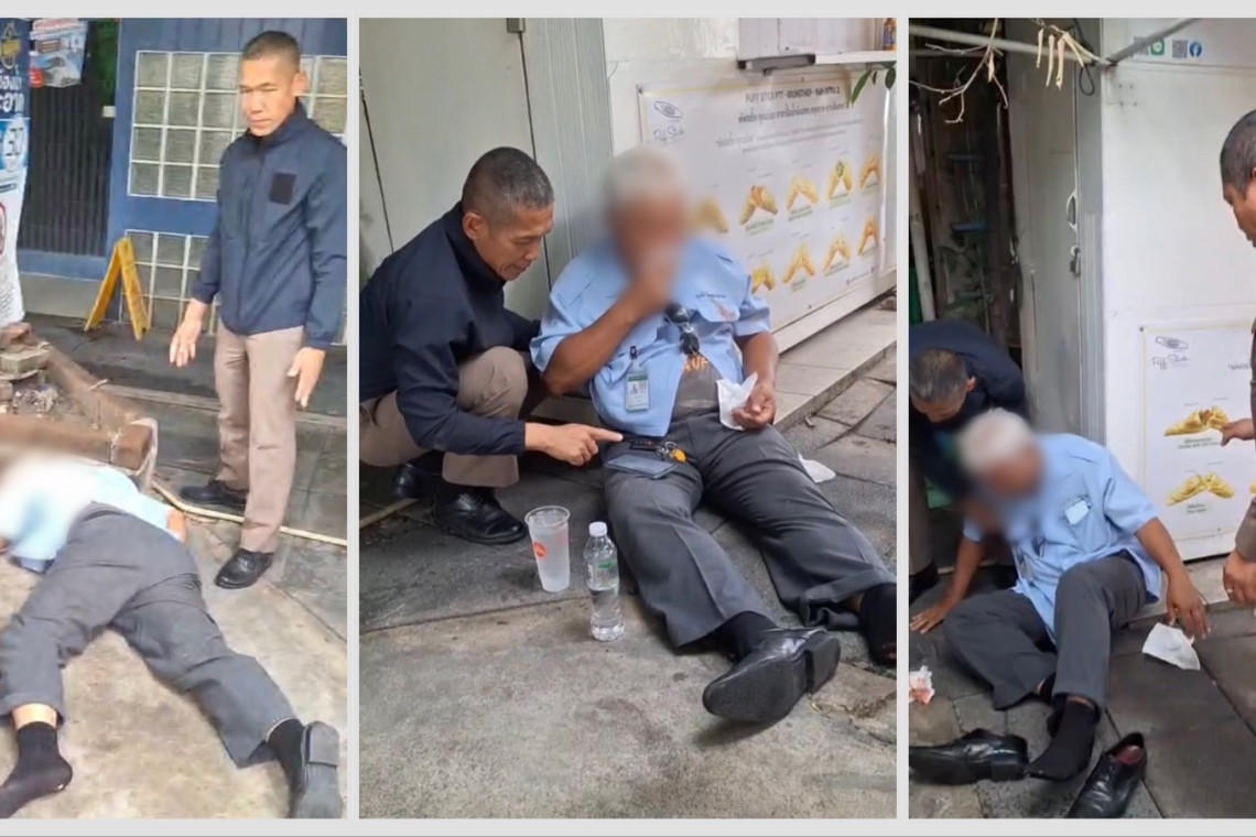ตำรวจ ตม. ช่วยชายสูงวัย หน้ามืดล้มหัวฟาดพื้น เลือดสาด หมดสติหน้าห้องน้ำปัมน้ำมัน เลียบทางด่วน รามอินทรา