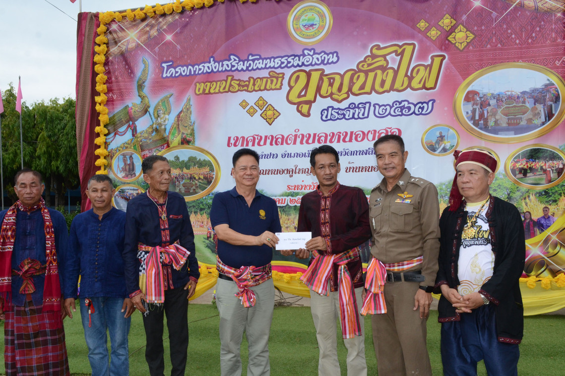 เทศบาลตำบลหนองสอ อำเภอเมือง จังหวัดกาฬสินธุ์ ร่วมกับหน่วยงานราชการ และประชาชน ร่วมใจกันจัดงานประเพณีบุญบั้งไฟ ประจำปี 2567 ส่งเสริมและสืบสานวัฒนธรรมอีสาน จัดขบวนแห่เซิ้งบั้งไฟ พร้อมรำบวงสรวงบูชาเทวดาพญาแถน ขอให้ฝนตกต้องตามฤดูกาลก่อนฤดูกาลทำนา
