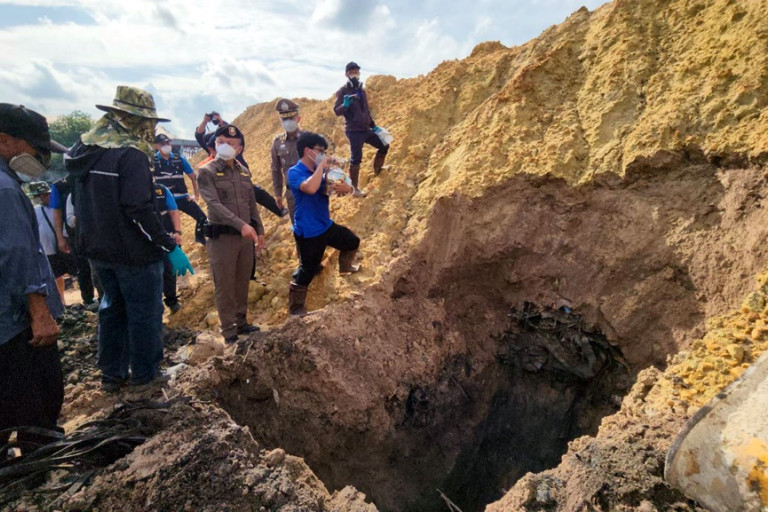 ด้านนายโกเมน ผิวพุ่ม นักวิเคราะห์นโยบายและแผนชำนาญการพิเศษ สำนักงานอุตสาหกรรมจังหวัดระยอง ได้นำเจ้าหน้าที่จากกรมโรงงานอุตสาหกรรม นำรถแบคโฮมาขุดตักดินภายในโรงงาน ซึ่งเป็นการสุ่มใน 6 จุด ตามที่ชาวบ้านในพื้นที่ร้องขอหลังมีการลักลอบฝังสารเคมีไว้บริเวณจุดดังกล่าว ซึ่งชาวบ้านยืนยันเมื่อช่วงปี 2556-2563 จุดดังกล่าว มีการขุดเป็นบ่อขนาดใหญ่ กว้างประมาณ 10 คูณ 20 เมตร จำนวน 3 บ่อ มีการสารเคมีเทลงบ่อจนเต็ม ก่อนถมด้วยดินปรับจนไม่เหลือเค้าโครงเดิมของบ่อ จึงได้แจ้งให้เจ้าหน้าที่มาขุด เพื่อนำดินไปตรวจสอบค่าดินหาสารเคมีปนเปื้อน