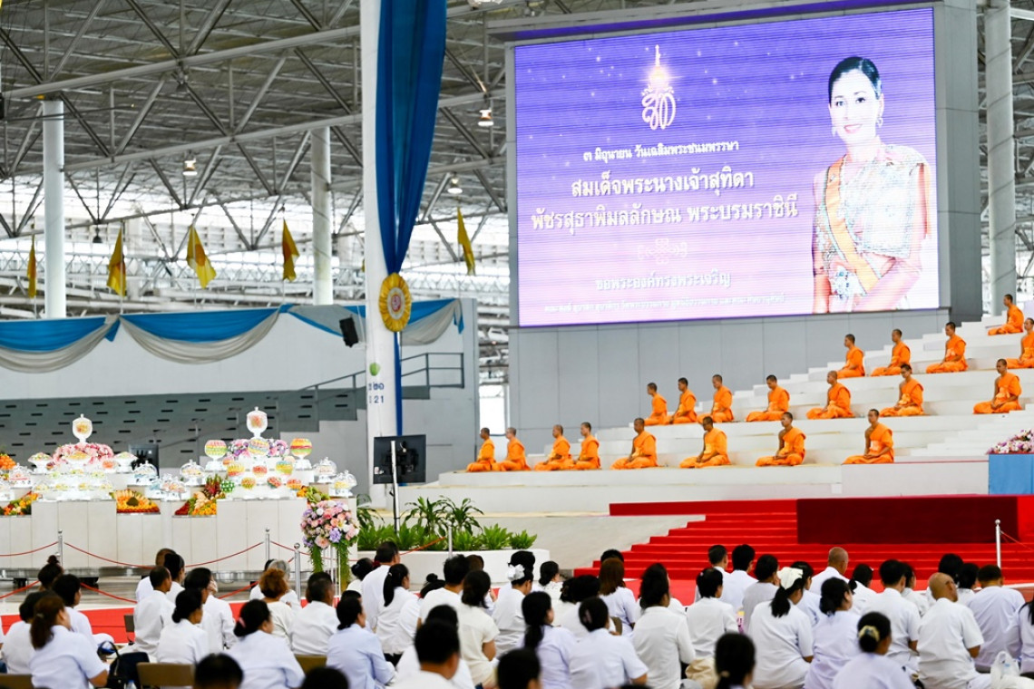 ภายในพิธีมี พระเดชพระคุณพระภาวนาธรรมวิเทศ ผู้ช่วยเจ้าอาวาสวัดพระธรรมกาย ได้นำคณะสงฆ์ อุบาสก อุบาสิกาและศิษยานุศิษย์วัดพระธรรมกายกว่า 20,000 คน เจริญสมาธิภาวนาเพื่อถวายพระราชกุศลแด่สมเด็จพระนางเจ้าสุทิดา พัชรสุธาพิมลลักษณ พระบรมราชินี เนื่องในวันเฉลิมพระชนมพรรษา ณ สภาธรรมกายสากล วัดพระธรรมกาย ในส่วนของบริเวณอาคารโถงช้าง วัดพระธรรมกาย ทางอำเภอคลองหลวงได้ร่วมกับวัดพระธรรมกาย โดยมีนางสาวอภิสรา เกษอินทร์ นายอำเภอคลองหลวง นำพุทธศาสนิกชน พสกนิกร ข้าราชการ พ่อค้า ประชาชน ร่วมพิธีเจริญพระพุทธมนต์ และทำบุญตักบาตรพระสงฆ์ 19 รูป และในช่วงเย็นร่วมพิธีถวายราชสักการะ วางพานพุ่มทองพุ่มเงิน และจุดเทียนชัยถวายพระพรชัยมงคลฯ เพื่อถวายพระราชกุศลและน้อมสำนึกในพระมหากรุณาธิคุณของสมเด็จพระนางเจ้า ฯ พระบรมราชินี และเป็นการสืบทอดพระพุทธศาสนาให้เจริญรุ่งเรืองต่อไป