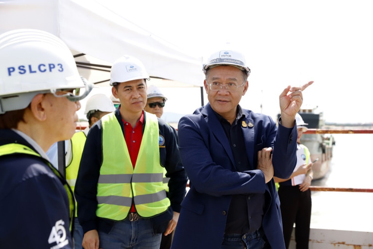 สำหรับการลงพื้นที่ติดตาม งานก่อสร้างในส่วนของงานถมทะเล ในโครงการพัฒนาท่าเรือแหลมฉบังเฟสที่ 3 ผู้แทน กลุ่มผู้รับเหมางาน ในกลุ่มกิจการร่วมค้า CNNC ได้รายงานความคืบหน้าของการดำเนินงาน ที่ปัจจุบันได้มีการเร่งรัดเพิ่มประสิทธิภาพในการทำงาน โดยได้เพิ่มแรงงาน เครื่องจักร และเรือขุด Grab Dredger เข้ามาใช้ในการปฏิบัติงานทำให้ ปัจจุบัน มีขีดความ สามารถในการขุดดินได้วันละ 2.3 ล้านลูกบาศก์เมตร และคาดว่าจะสามารถส่งมอบงานก่อสร้างถมทะเลที่แล้วเสร็จในพื้นที่ F1 ของโครงการฯ ให้แก่ กทท. ได้ทันภายในเดือน กรกฎาคมนี้