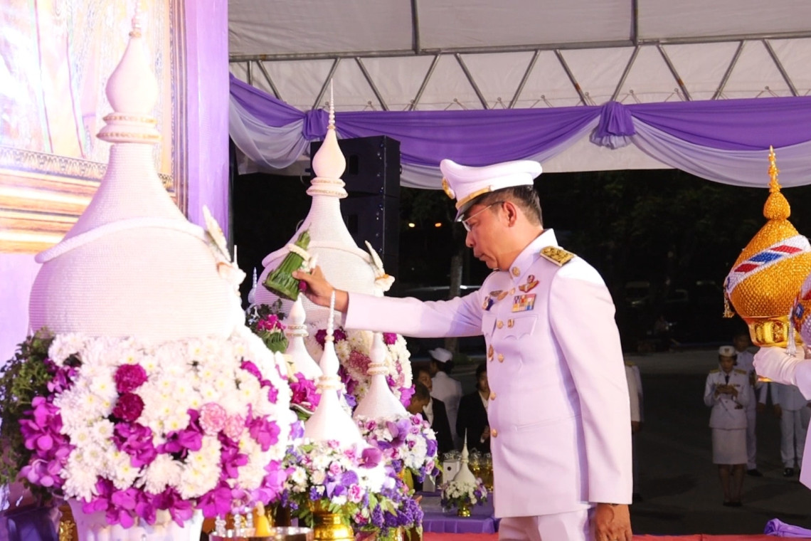 โดยผู้ว่าราชการจังหวัดระยองได้นำวางพานพุ่มเงิน พุ่มทอง ถวายธูปเทียนแพ เปิดกรวยกระทงดอกไม้ จุดเทียนถวายพระพรชัยมงคล พร้อมกล่าวกราบบังคมทูลถวายพระพรชัยมงคลและกล่าวนำผู้ร่วมพิธีถวายพระพรชัยมงคล และร่วมกันขับร้องเพลงสดุดีจอมราชา และพร้อมกล่าวนำทรงพระเจริญ 3 ครั้ง โดยพร้อมเพรียงเพื่อแสดงออกถึงความจงรักภักดี เทิดทูนต่อสถาบันพระมหากษัตริย์ อันเป็นศูนย์รวมจิตใจของประชาชน ชาวไทยทั้งประเทศ