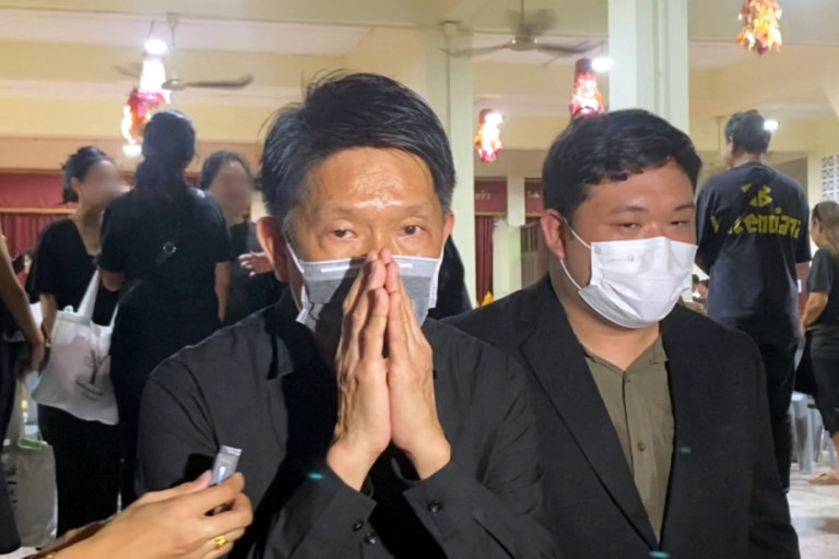 นายพรชัย พ่อผู้ก่อเหตุ กล่าวว่า ตนตั้งใจจะบวชอุทิศส่วนบุญส่วนกุศลให้กับผู้เสียชีวิตแทนลูกชายของตน ตอนนี้ต้องรอถามพระอาจารย์ที่จะบวชให้ว่าสามารถบวชได้กี่วัน แต่อาจจะไม่มากเนื่องจากตนต้องทำงาน วันนี้ที่เดินทางมาเป็นความตั้งใจเดิมที่ตนอยากจะมาร่วมงานศพ รอให้เสร็จงานเรียบร้อยก่อนแล้วตนจะบวชให้ วันนี้ได้นำซองมาช่วยทำบุญและตั้งใจนำมาให้กับครอยครัวผู้เสียชีวิต ส่วนลูกของตนหากพ้นโทษก็จะให้บวชให้กับผู้เสียชีวิตเช่นกัน ส่วนภรรยาของตนได้ฝากขอโทษสื่อทุกท่าน อาจจะคิดว่าทำไมภรรยาตนถึงไม่มาเลย ตอนแรกจะตามมาตั้งแต่วันที่ลูกมากับตำรวจแล้ว แต่เนื่องจากคุณยายเป็นลมเพราะเห็นหลานโดนจับต่อหน้าต่อตา แล้วคุณยายอายุ 90 กว่าแล้ว ภรรยาตนจึงจำเป็นต้องอยู่ดูแลคุณยายที่ต่างจังหวัด ส่วนตนก็จะดูแลทางนี้แทนครอบครัวเอง
