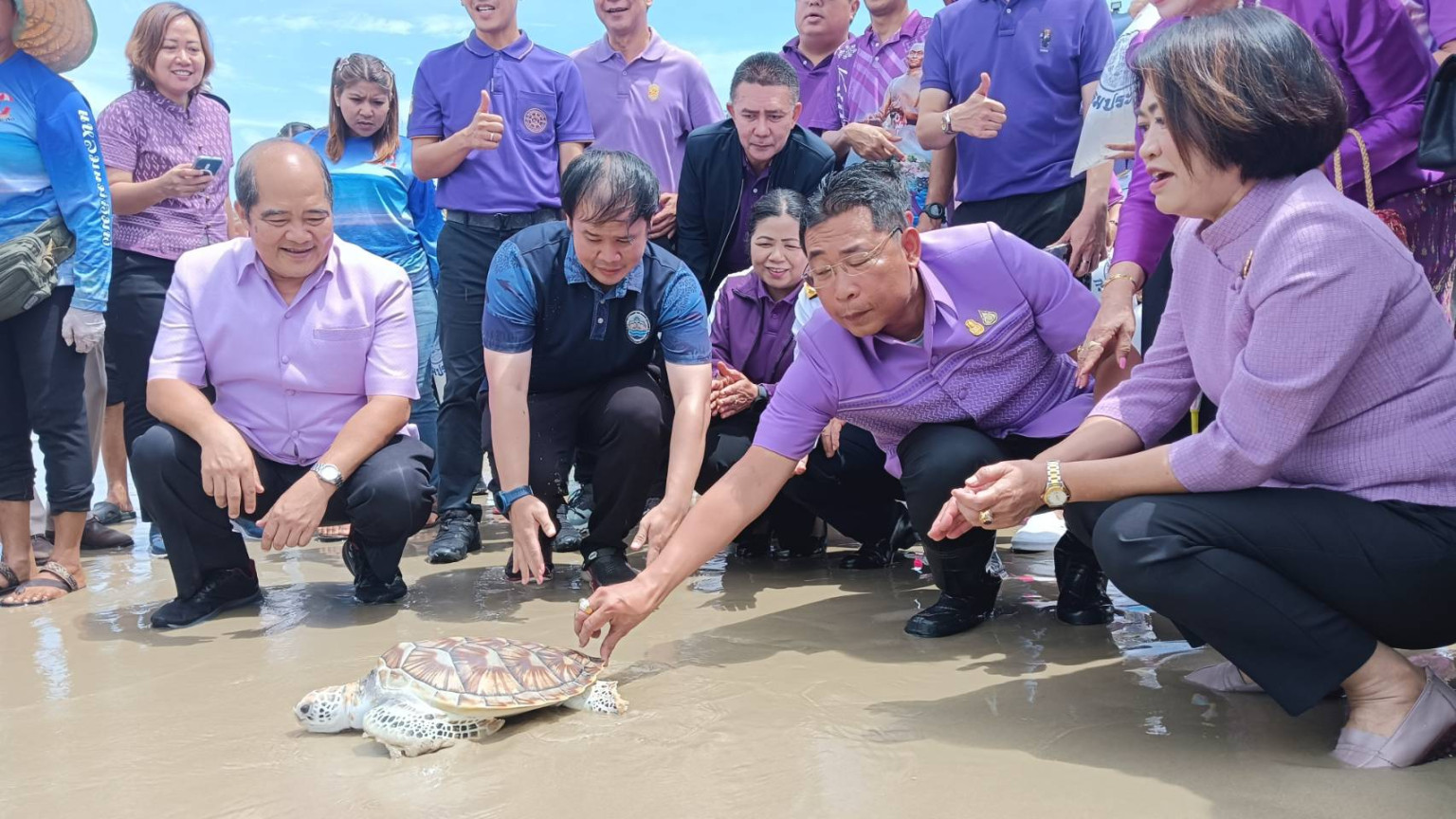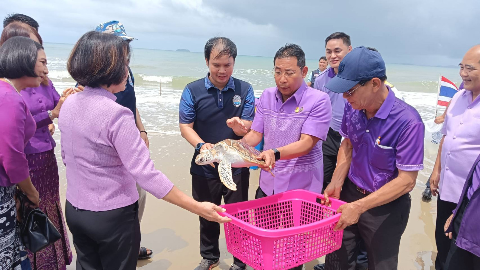 วันที่ 5 มิ.ย.67 ที่บริเวณหาดแหลมแม่พิมพ์ หน้าโรงแรม Cruises the pool access หมู่ 4 ต.กร่ำ อ.แกลง จ.ระยอง นายไตรภพ วงศ์ไตรรัตน์ ผวจ.ระยอง เป็นประธานปล่อยพันธุ์สัตว์น้ำ กุ้งกุลาดำ 300,000 ตัว เต่าตนุ 1 ตัว เพื่อเฉลิมพระชนมพรรษาสมเด็จพระนางเจ้าสุทิดา พัชรสุธาพิมลลักษณ พระบรมราชินี โดยมีน.ส.สลาลีวรรณ ทัพทวี รอง ผวจ.ระยอง นายกันตภณ สุขสงค์ นายอำเภอแกลง นายเสรี เรือนหล้า ประมงจังหวัดระยอง นายคเชนทร์ แจ่มใส นายกเทศมนตรีตำบลสุนทรภู่ นายสงวน แสงวงศ์กิจ ประธานสภาอุตสาหกรรมจังหวัดระยอง นายโสธร เทพนุเคราะห์ นายกสมาคมประมงสุนทรภู่ หัวหน้าส่วนราชการ ภาคโรงงานอุตสาหกรรม กลุ่มประมง ประชาชน และนักเรียนในพื้นที่ร่วมกิจกรรมจำนวนมาก