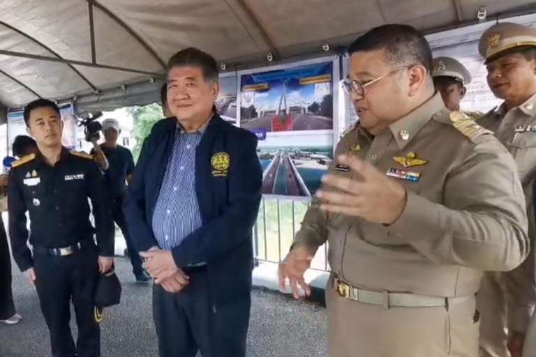 จากนั้นนายภูมิธรรม และคณะลงพื้นที่ติดตามรับฟังความคืบหน้าโครงการก่อสร้างสะพานคู่ขนานข้ามแม่น้ำโก-ลก อ.สุไหงโก-ลก หรือ สะพานสุไหงโก-ลก แห่งที่ 2 มีลักษณะโครงสร้างเป็นรูปเรือ มาจากการออกแบบของฝั่งประเทศมาเลเซีย สะท้อนภูมิปัญญาของทั้ง 2 ประเทศ