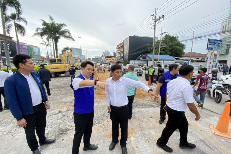 วันที่ 5 มิ.ย.67 นายปรเมศวร์ งามพิเชษฐ์ นายกเมืองพัทยา พร้อมด้วย นายมาโนช หนองใหญ่ นายเกียรติศักดิ์ ศรีวงษ์ชัย รองปลัดเมืองพัทยา รักษาราชการแทนปลัดเมืองพัทยา นายมีชัย อินทร์พิทักษ์ ประธานคณะทำงานนายกเมืองพัทยา ร.ต.อ.ชยพล อยู่รอด รอง สว.จร.สภ.เมืองพัทยา นำกำลังส่วนเกี่ยวข้อง ร่วมลงพื้นที่เพื่อติดตามความคืบหน้าโครงการปรับปรุงผิวจราจร ถนนสุขุมวิทบริเวณแยกไฟแดง แยกพัทยาเหนือ พร้อมหาแนวทางแก้ไขปัญหาการจราจรติดขัด หลังมีการปิดช่องทางการจราจรส่งผลกระทบต่อการสัญจรไปมาของประชาชน ในพื้นที่เป็นอย่างมาก