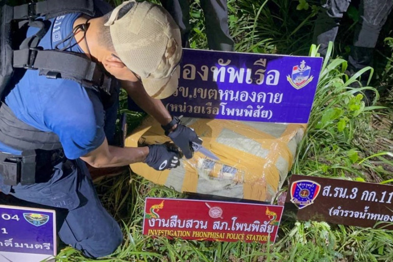 สืบเนื่องจากเมื่อวันที่ 5 มิ.ย.67 เวลา 12.00น. ร.อ.ธนกร ฤทธิ์จอหอ หัวหน้าหน่วยเรือโพนพิสัย ได้รับแจ้งจากสายข่าวว่าจะมีการลักลอบนำยาเสพติดจากประเทศเพื่อนบ้านข้ามโขงมาในพื้นที่ตำบลวัดหลวง อ.โพนพิสัย จึงได้รายงานให้ น.อ.จิรัฏฐ์ ผูกทอง ผบ.นรข.เขตหนองคาย ทราบ และได้ประสานหน่วยงานความมั่นคงในพื้นที่ ร่วมกันวางกําลังซุ่มเฝ้าตรวจพื้นที่ที่ได้รับแจ้งและบริเวณใกล้เคียง จนกระทั่งเวลาประมาณ 01.15 น. ของวันที่ 6 มิ.ย.67 เจ้าหน้าที่ได้ใช้กล้องส่องกลางคืนตรวจพบเรือต้องสงสัย จำนวน 1 ลำ ที่บริเวณกลางแม่น้ำโขง มีคนนั่งมากับเรือ จำนวน 2 คน โดยพายเรือมาจากฝั่งประเทศเพื่อนบ้าน มุ่งหน้ามาฝั่งไทยและเข้าจอดที่บริเวณริมฝั่งแม่น้ำโขงหลังสถานีโรงไฟฟ้าย่อย บ.แดนเมือง ต.วัดหลวง อ.โพนพิสัย โดยห่างจากจุด จนท.ซุ้มอยู่ประมาณ 500 เมตร จากนั้น จนท.จึงได้ปิดระยะเข้าไปตรวจสอบบริเวณดังกล่าว เมื่อ จนท.เข้าไปถึงพบชายต้องสงสัย จำนวน 1 คน ยืนอยู่บริเวณพงหญ้าริมฝั่งแม่น้ำโขงหลังสถานีโรงไฟฟ้าย่อย จนท.จึงแสดงตัวเพื่อตรวจค้น ชายต้องสงสัยดังกล่าวเมื่อเห็น จนท. ได้วิ่งหนีกลับไปลงเรือที่จอดอยู่ขับหลบหนีไปได้