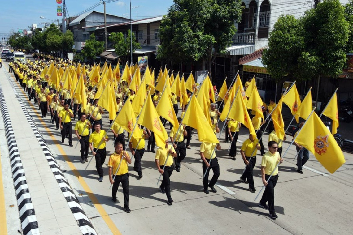 วันที่ 7 มิ.ย.67 ที่ศาลากลางจังหวัดยโสธร นายชรินทร์ ทองสุข ผู้ว่าราชการจังหวัดยโสธร พร้อมด้วยนายสุวัฒน์ เข็มเพชร นายชาญชัย ศรศรีวิชัย รองผู้ว่าราชการจังหวัดยโสธร นายกเหล่ากาชาดจังหวัด ปลัดจังหวัด หัวหน้าส่วนส่วนราชการ และประชาชนชาวจังหวัดยโสธรได้เคลื่อนขบวนธงตราสัญลักษณ์เฉลิมพระเกียรติ พระบาทสมเด็จพระเจ้าอยู่หัว เนื่องในโอกาสพระราชพิธีมหามงคลเฉลิมพระชนมพรรษา 6 รอบ 28 กรกฎาคม 2567 เพื่อสงมอบให้จังหวัดศรีสะเกษ