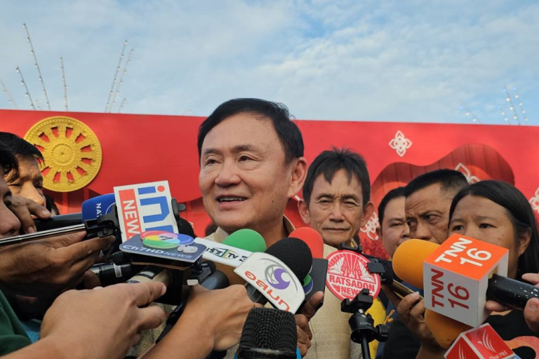 ผู้สื่อข่าวถามว่า ใช่ลุงป้อมหรือเปล่า นายทักษิณ ตอบว่า "ไม่รู้ มีใครบ้างอยู่ในป่าบ้างผมไม่รู้ บ้านเมืองมันถึงเวลาที่จะต้องสงบสุขได้แล้ว สื่อมวลชนเองก็ทางการเมืองก็ให้เบาเบาได้แล้ว บ้านเมืองจะได้เดินหน้าขึ้น เพราะวันนี้ปัญหาบ้านเมืองมันยากกว่าตอนที่ผมมาเป็นนายกฯ และระบบราชการก็เปลี่ยนมานาน ที่มางานวันนี้มาทำหน้าที่เพราะนาคเป็นน้องชาย สส. เขาเชิญหัวหน้าพรรคกับผมก็เลยมา"