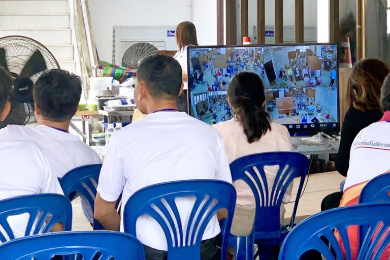 ทั้งนี้ เมื่อถึงเวลารายงานตัว 08.00 น. ผู้สมัครแต่ละกลุ่มได้เดินทางเข้าประจำหน่วย โดยมีการขอเรียกเก็บอุปกรณ์สื่อสาร โทรศัพท์มือถือ นาฬิกาดิจิทัลก่อนลงทะเบียนทันที ซึ่งอุปกรณ์สื่อสารทั้งหมดจะถูกจัดเก็บในถุงซิปล็อก เขียนชื่อเจ้าของเครื่องกำกับไว้ ก่อนเจ้าหน้าที่คณะกรรมการประจำหน่วยเลือกตั้ง (กปน.) จะนำมาใส่หีบเก็บตามกลุ่มจำนวน 4 หีบ และมีเจ้าหน้าที่ตำรวจตรวจสอบความปลอดภัย จนกว่าจะส่งคืนผู้สมัครเมื่อเสร็จสิ้นการเลือก