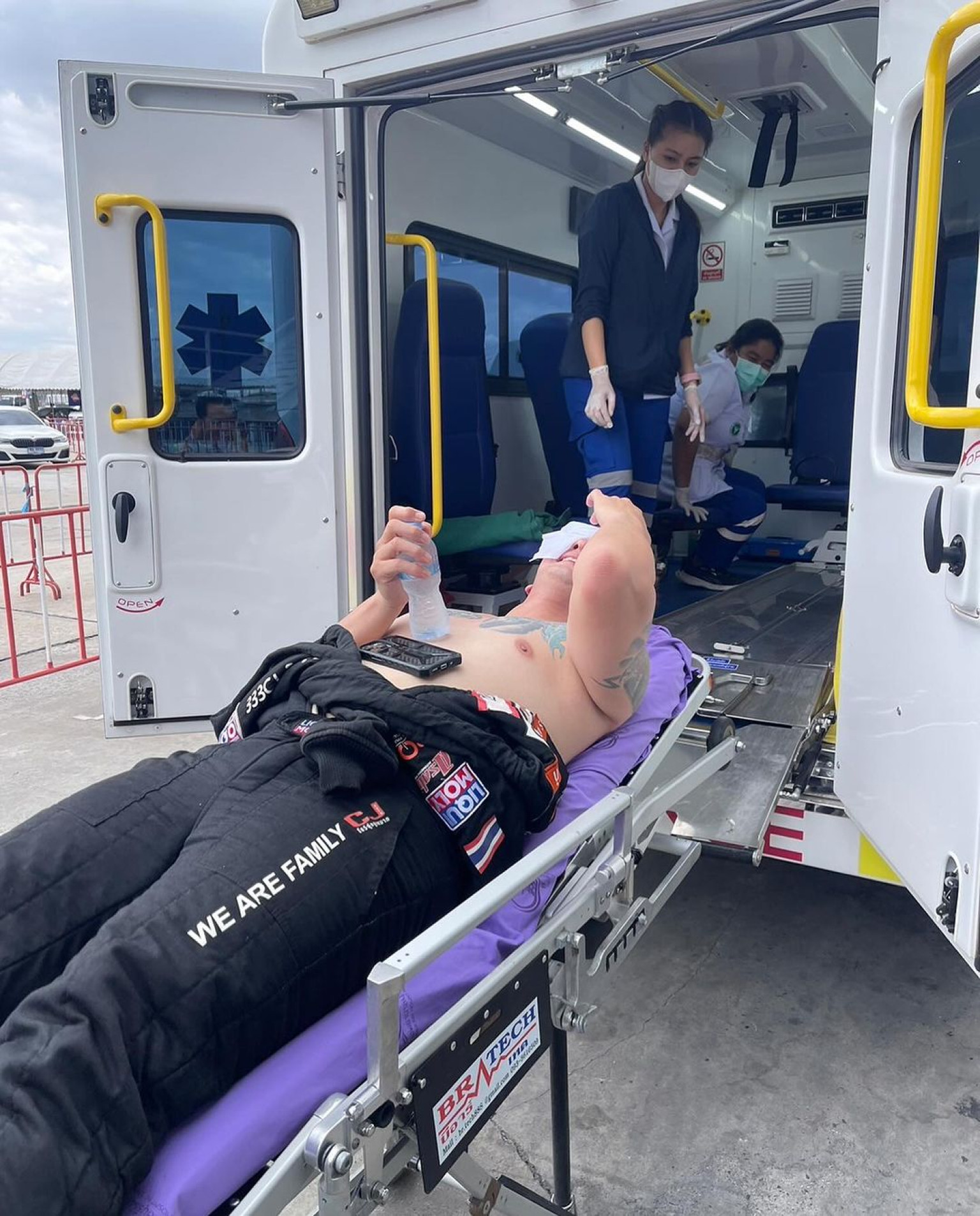 เนื่องจากร่างกายก็ไม่ค่อยพร้อม เพราะเพิ่มน้ำหนัก ให้หน้าตาสดใส ทานอาหารครบทุกมื้อ บำรุงร่างกายต่างๆนาๆ แต่งงว่าเราหายใจเข้าไม่ได้หลังจากแข่งรถ… ก้มตัวยิ่งเจ็บมากๆ จึงให้แพทย์สนามช่วยตรวจสอบ สรุปกล้ามเนื้อหน้าอกอักเสบ จากการรัดของเข็มขัดนิรภัยรถแข่ง แน่นเกินไป เหมือนโดนกดทับต่อเนื่อง 50นาที…จึงเรียนมาเพื่อทราบ ว่าผมปลอดภัยดีแล้วครับ 🙏💚 กราบขอบคุณทุกคนที่เป็นห่วง และซ้ำเติมครับ