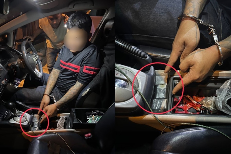 วันที่ 9 มิ.ย. พล.ต.ต เกียรติกุล สนธิเณร ผบก.น.3 พ.ต.อ.สมโภช ทองมูล ผกก.สน.ร่มเกล้า พ.ต.ต.กรณ์วรรัตน์ พรมสวรรค์ สว.สส.ฯ รรท.รอง ผกก.สส.สน.ร่มเกล้า ชุดสืบสวนสน.ร่มเกล้า จับกุมนายสมชาย อายุ 39 ปี พร้อมของกลาง พร้อมของกลาง อาวุธปืนแบบออโตเมติก ชนิดรมดำ ขนาด .45 มม. 1 กระบอก ภายในมีกระสุน ขนาด .45 มม. บรรจุในแม็กกาซีน จำนวน 6 นัด ซุกซ่อนอยู่ในช่องเก็บของข้างประตูฝั่งคนขับ อาวุธปืนลูกโม่ ขนาด .38 มม. 1 กระบอก ภายในมีกระสุน ขนาด .38 มม.บรรจุในโม่ จำนวน 5 นัด ซุกซ่อนอยู่ในช่องเก็บของข้างประตูฝั่งคนขับ ซองอาวุธปืนพกใน ขนาด .45 มม. 1 ซอง ซองอาวุธปืนพกใน ขนาด .38 มม. 1 ซอง กระสุนปืนขนาด .45 มม.บรรจุในถุงพลาสติก จำนวน 6 นัด วางอยู่ในช่องเก็บข้างกระปุกเกียร์ 6.กระสุนปืนขนาด .45 มม. บรรจุในกล่องกระสุน จำนวน 28 นัด ซุกซ่อนอยู่กระเป๋าสะพายสีดำวางอยู่เบาะด้านหน้าข้างคนขับ 7.แม็กกาซีนอาวุธปืนชนิดออโตเมติก ขนาด .45 มม. จำนวน 1 ซอง รวมอาวุธปืน จำนวน 2 กระบอก, กระสุนปืนขนาด .45 จำนวน 40 นัด,กระสุนปืนขนาด .38 จำนวน 5 นัด ยาไอซ์ หนัก 2.23 กรัม ยาคีตามีนหนัก 0.55 กรัม วางอยู่ในช่องเก็บข้างกระปุกเกียร์11.กระเป๋าสะพายข้างสีดำ 1 ใบ รถยนต์นั่งส่วนบุคคล สีบอร์นฟ้า เมื่อตรวจสอบหมายเลขทะเบียนปรากฎว่าหมายเลขทะเบียนไม่ตรงกับรถที่แจ้งจดกับกรมการขนส่งทางบก โทรศัพท์มือถือ 2 เครื่องรับรองผลการตรวจจาก รพ.ของนายสมชาย จำนวน 1 แผ่น จับกุมได้ที่บริเวณริมถนนท้าย ซอยเคหะร่มเกล้า15 ชุมชนโซน 8 แขวงคลองสองต้นนุ่น เขตลาดกระบัง กรุงเทพฯ ต่อเนื่อง สน.ร่มเกล้าเมื่อวันที่ 8 มิ.ย.เวลาประมาณ 21.50 น. ที่ผ่านมา
