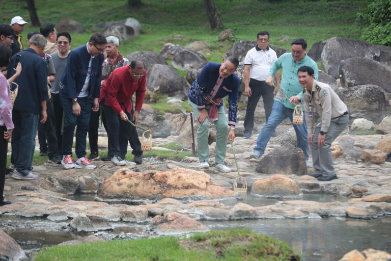 จากนั้นนายกฯถ่ายรูปหน้าป้ายลานน้ำพุร้อน ก่อนเดินไปต้มไข่ที่บ่อน้ำร้อน โดยจุ่มชะลอมแขวนลงในบ่อ และเดินเยี่ยมชมบูธผลิตภัณฑ์โอทอป อาทิ ผลิตภัณฑ์ผ้าฝ้ายทอมือย้อมสีธรรมชาติ กลุ่มน้ำมอญแจ้ซ้อน ผ้าปักด้วยมือแจ้ซ้อน ผลิตภัณฑ์กาแฟ กลุ่มกาแฟตั๋วกะหมี สมุนไพรแจ้ซ้อน Herb ข้าวทิพย์ กลุ่มข้าวสายน้ำแร่ เป็นต้น