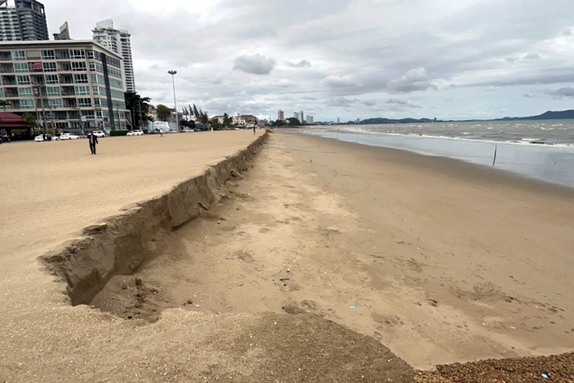 ส่วนที่ปรากฎบริเวณชายหาดนาจอมเทียน พบว่าพื้นที่ชายหาดระยะทาง 1,000 เมตร ที่กรมเจ้าท่าได้เสริมทรายถูกกัดเซาะลงทะเล และมีพื้นชายหาดระยะทาง 400 เมตร ถูกกัดเซาะลาดชันลงไป 1.5 เมตร ส่งผลทำให้พื้นที่ชายหาดที่ถูกกัดเซาะลากชันลงไป 1.5 เมตร มีความไม่ปลอดภัยต่อประชาชนและนักท่องเที่ยว ด้วยชั้นของทรายที่สะสมขึ้นเป็นเนินมีความสูงกับระดับพื้นทรายที่เป็นสโลปเดิม หวั่นก่อให้เกิดอันตราย หากมีประชาชนและนักท่องเที่ยวเข้ามาพักผ่อนบริเวณดังกล่าว ในเวลาค่ำคืนก็อาจจะพลัดตกลงไปได้