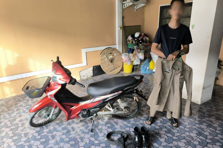 พ.ต.อ.ปพนพัชร์ กล่าวถึงพฤติการณ์ ว่า ผู้เสียหายได้ขี่รถจยย. ยี่ห้อฮอนด้า เวฟ สีแดง-ดำ มาซื้อของที่ร้านสะดวกซื้อ ต่อมาได้มีชายจำนวน 1 คน แต่งกายเครื่องแบบตำรวจ ยศร้อยตำรวจตรี ลงมาจากรถยนต์ ยี่ห้อโตโยต้า จากเบาะที่นั่งข้างคนขับ เข้ามาพูดคุยกับผู้เสียหาย จากนั้นได้พาผู้เสียหายขึ้นรถ โดยภายในรถมีชายอีก 2 คน คนขับแต่งกายสวมเสื้อเกราะกันกระสุน สวมกางเกงขายาวสีน้ำตาล สวมหมวกแก๊บสีดำ ส่วนอีกคนซึ่งนั่งอยู่หลังคนขับ สวมเสื้อกั๊กสีดำ กางเกงขายาวสีน้ำตาล สวมหมวกแก๊บสีดำ โดยทั้ง 3 คน สวมใส่หน้ากากอนามัย ได้บังคับให้ผู้เสียหายล่อซื้อยาเสพติดให้ แต่ผู้เสียหายไม่สามารถทำได้ จึงได้นำกุญแจมือมาใส่ผู้เสียหาย รุมทำร้าย แล้วเอากระเป๋าเงินของผู้เสียหายไป จากนั้นได้ขับรถกระบะคันก่อเหตุมาจอดบริเวณข้างร้านสะดวกซื้อ อ่าวอุดม ซอย 5 ผู้เสียหายอาศัยจังหวะเผลอได้วิ่งหลบหนีไปได้ จากนั้นชายที่สวมใส่เสื้อกั๊ก ได้ขับขี่รถจักรยานต์ของผู้เสียหายไป