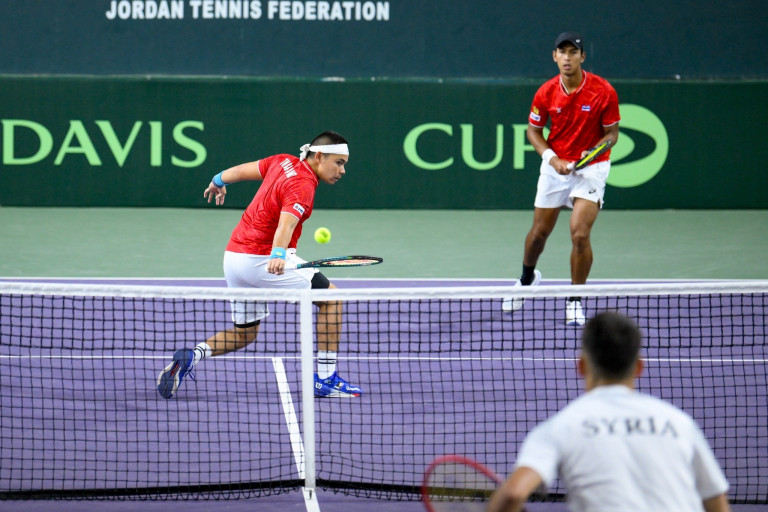 ขณะที่การแข่งขันแต้มสุดท้ายชี้ชะตาหาผู้ชนะ ในประเภทคู่ ไทยส่ง "ณัฐ" ปรัชญา อิสโร กับ กษิดิศ สำเร็จ ลงสนามดวลแร็กเกตกับ เทย์ม อัล อัซเมห์ และ ฮาเซม นอว์ ผลปรากฏว่า คู่ไทยเป็นฝ่ายเฉือนชนะไปอย่างสุดมัน 2-1 เซต ด้วยสกอร์ 6-2, 3-6 และ 6-0 เก็บแต้มให้ทีมไทยเฉือนชนะทีมซีเรีย 2-1 คู่ ส่วนผลการแข่งขันอีกคู่ในกลุ่ม บี จอร์แดน เจ้าภาพ ชนะ แปซิฟิก โอเชียเนีย 3-0 คู่ สำหรับผลกลุ่ม เอ ซาอุดิอาระเบีย ชนะ มาเลเซีย 2-1 คู่ สิงคโปร์ ชนะ อินโดนีเซีย 2-1 คู่