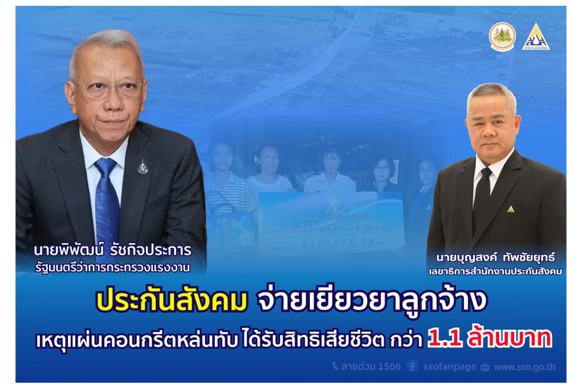 #ข่าววันนี้ #แผ่นคอนกรีตหล่นทับ #ประกันสังคม #เงินเยียวยา #สำนักงานประกันสังคม #กระทรวงแรงงาน