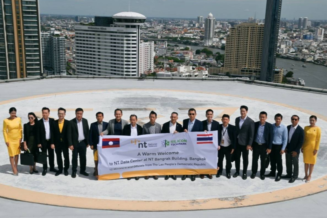 พันเอก สรรพชัยย์ หุวะนันทน์ กรรมการผู้จัดการใหญ่ บริษัท โทรคมนาคมแห่งชาติ จำกัด (มหาชน) ให้การต้อนรับ Dr. Sthabandith Insisiengmay ผู้ช่วยรัฐมนตรีประจำกระทรวงแผนการและการลงทุน, Mr. Keovisouk Solaphom ผู้ช่วยรัฐมนตรีประจำกระทรวงเทคโนโลยีและการสื่อสาร พร้อมด้วยคณะผู้บริหารระดับสูงจากหน่วยงานภาครัฐของสาธารณรัฐประชาธิปไตยประชาชนลาว (สปป.ลาว) ที่เข้าร่วมประชุมปรึกษาหารือและเยี่ยมชมศึกษาดูงานในหัวข้อ “เทคโนโลยีและนวัตกรรมด้าน AI และ Data Center ในประเทศไทย” พร้อมเข้าเยี่ยมชมศูนย์ NT Data Center เพื่อศึกษาข้อมูลและเตรียมการสำหรับการสร้าง Data Center ที่มุ่งเน้น AI ในประเทศลาว ณ อาคารโทรคมนาคม NT บางรัก