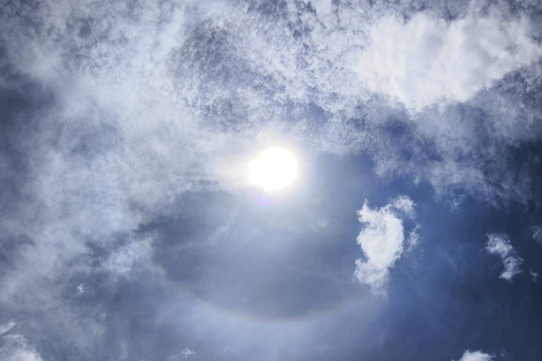 โดยในการประกอบพิธีช่วงเช้า มี พล.อ.นิรุทธ เกตุสิริ นายกสภามหาวิทยาลัยราชภัฏอุบลราชธานี เป็นประธานในพิธีบวงสรวงบอกกล่าวเทพเทวา และพิธีทำบุญตักบาตรข้าวสารอาหารแห้งแด่พระสงฆ์ โดยมี นายพศิน ทาสิริ นายอำเภออุทุมพรพิสัย พร้อมด้วย พ.ต.อ.อัครพล รัศมี ผกก.สภ.เมืองศรีสะเกษ พ.ต.อ.นิลกาฬ พรศักดิ์ ผกก.สภ.อุทุมพรพิสัย พ.ต.ท.พิเนตร ดาวเรือง สวญ.สภ.จะกง นำพุทธศาสนิกชน ศิษยานุศิษย์ และประชาชนในพื้นที่ร่วมพิธีกันอย่างเนืองแน่น ซึ่งในขณะที่มีการประกอบพิธีบวงสรวงเทพเทวา และพิธีมหาพุทธาภิเษก โดยพระเกจิอาจารย์ชื่อดังกำลังนั่งปรกอธิษฐานจิตอยู่นั้น ได้เกิดปรากฎการณ์พระอาทิตย์ทรงกลด ท้องฟ้าเปิด เป็นวงแหวนรอบพระอาทิตย์สวยงามอย่างน่าอัศจรรย์ ชาวบ้านเห็นแล้วต่างรู้สึกศรัทธาในพิธีอันเข้มขลังเป็นอย่างมาก ต่างยกมือสาธุกันไปตามๆกัน