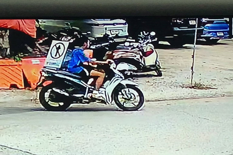 นางผึ้ง อายุ 59 ปี เป็นคนดูแลทำความสะอาด เล่าให้ฟังว่า ตนกำลังเดินออกมาจากที่ล้างชาม เห็นคนร้ายกำลังคร่อมรถจักรยานยนต์คันดังกล่าว แล้วก็สตาร์ทรถออกไป ขับขี่ออกไป โดยชายคนดังกล่าว อายุน่าจะประมาณ 17-18 ปี ไม่เคยเห็นหน้าและไม่ทราบว่าเป็นใครอยู่ที่ไหน