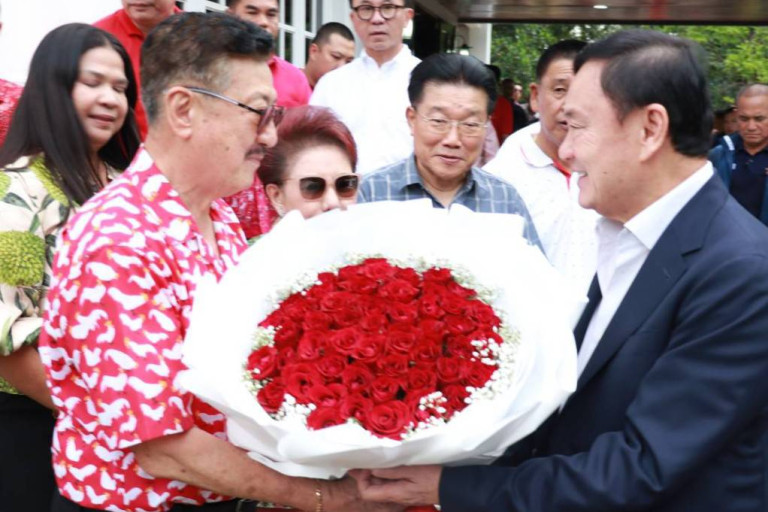 นายทักษิณ กล่าวว่า ในวันนี้เป็นวันคล้ายวันเกิดของนายสมนึก และนางสาวพิมพ์พรรณ ธนเดชากุล น้องสาวนายสมนึก แต่เกิดคนละปี ตนขอให้นางสาวพิมพ์พรรณ และนายสมนึก มีสุขภาพร่างกายที่แข็งแรงตลอดไป ขอให้มีอายุยืนๆเป็นที่รักของคนนนทบุรี อย่างน้อยก็ต้องเป็นนายกเทศมนตรีนครนนทบุรีไปทุกสมัย