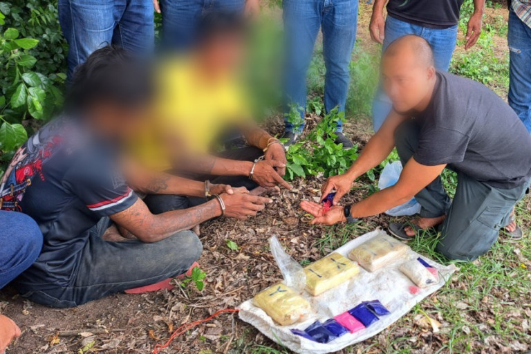 โดยร่วมกันจับกุมตัว นายทศพล(สงวนนามสกุล)อายุ 34 ปี กับนายสิงห์ (นามสมมุติ) อายุ 17 ปี ทั้งคู่เป็นชาว อ.หนองหงส์ จ.บุรีรัมย์ ได้พร้อมของกลาง ยาบ้า 3 ห่อ จำนวน 9 มัด รวมจำนวน 18,000 เม็ด ที่ผู้ต้องหาทั้ง 2 คน โยนทิ้งระหว่างวิ่งหลบหนีการจับกุมของเจ้าหน้าที่ กับที่ซุกซ่อนอยู่บริเวณใต้พุ่มไม้ใกล้กระท่อมที่เกิดเหตุ และยาบ้าที่บรรจุอยู่ในถุงพลาสติกอีก 880 เม็ด ซุกซ่อนอยู่ในรถจักรยานยนต์ของ นายทศพล หรือเอ๋ จอดอยู่บริเวณกระท่อม อยู่ทางทิศเหนือบ้านศรีสง่า หมู่ที่ 4 ต.ไทยสามัคคี อ.หนองหงส์ จ.บุรีรัมย์ รวมยาบ้าของกลางทั้งหมด 18,880 เม็ด