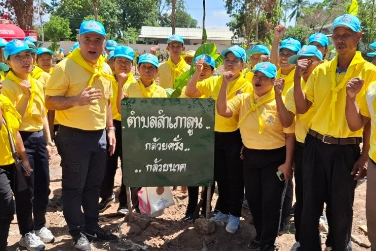 จากนั้น ประธานเปิดกรวยกระทงดอกไม้ธูปเทียนแพถวายราชสักการะ ผู้ร่วมพิธีถวายความเคารพ วันทยหัตถ์ ผู้คุมแถว มือลง ประธานเข้าประจำแท่นกล่าว หันหน้าเข้าหาพระบรมฉายาลักษณ์ ประธานกล่าวสำนึกในพระมหากรุณาธิคุณ ผู้คุมแถว ถวายความเคารพ ตรงหน้า วันทยหัตถ์ผู้ร่วมพิธี ถวายความเคารพ (วันทยหัตถ์) ผู้คุมแถว มือลง พร้อมทั้งกล่าวปฏิญาณตน กล่าวคำปฏิญาณร้อมกัน "ราทำความ ดี ด้วยหัวใจ" พร้อมกัน 3 ครั้ง แล้วยกมือขวาขึ้นเหนือศีรษะ พร้อมกล่าว คำว่า "เฮ้" พร้อมกัน และในช่วงบ่ายวันนี้ จิตอาสาพระราชทาน และประชาชนที่เข้าร่วมกิจกรรมร่วมกันปฏิบัติงาน ด้วยการการแต่งกาย เสื้อโทนสีเหลือง พร้อมหมวกและผ้าพันคอพระราชทาน