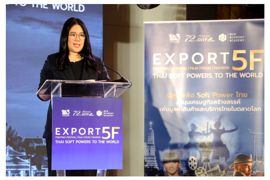 สถาบันพัฒนาผู้ประกอบการการค้ายุคใหม่ (NEA) กรมส่งเสริมการค้าระหว่างประเทศ (DITP) ประกาศความสำเร็จโครงการ“Export 5F : Thai Soft Powers to the World” (Fighting, Festival, Film, Food & Fashion) สร้างองค์ความรู้ผู้ประกอบการในอุตสาหกรรม Soft Power มากกว่า 500 ราย ผลักดันการนำซอฟต์พาวเวอร์ไทยไปต่อยอด เพิ่มมูลค่าสินค้าและบริการ พร้อมก้าวสู่โอกาสทางการค้าและเพิ่มขีดความสามารถการแข่งขันในเวทีโลก