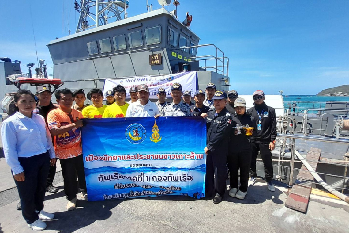 เมืองพัทยา ประสานทัพเรือภาคที่ 1 จัดส่งน้ำอุปโภค-บริโภคกว่า 1.5 แสนลิตร ส่งตรงถึงท่าหน้าบ้านเกาะล้าน