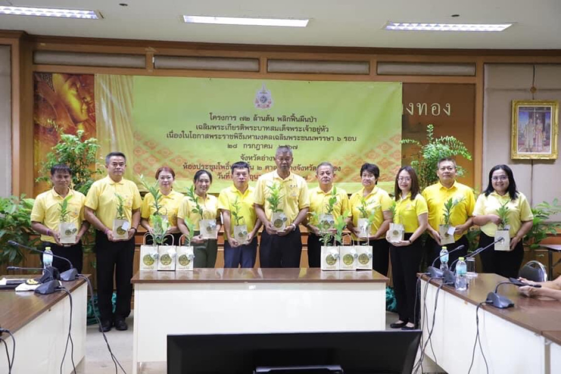 จังหวัดอ่างทอง จัดพิธีมอบกล้าไม้ให้หัวหน้าส่วนราชการในท้องที่ของจังหวัดอ่างทอง ภายใต้ “โครงการ 72 ล้านต้น พลิกฟื้นผืนป่า เฉลิมพระเกียรติพระบาทสมเด็จพระเจ้าอยู่หัว เนื่องในโอกาสพระราชพิธีมหามงคลเฉลิมพระชนมพรรษา 6 รอบ 28 กรกฎาคม 2567"