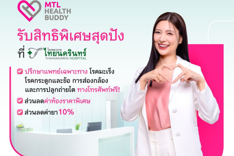 ล่าสุด เมืองไทยประกันชีวิต โดยโครงการ “MTL Health Buddy” จับมือ โรงพยาบาลไทยนครินทร์ ร่วมเติมเต็มความอุ่นใจด้วยการมอบสิทธิประโยชน์พิเศษให้กับลูกค้าในโครงการ MTL Health Buddy ประกอบด้วย