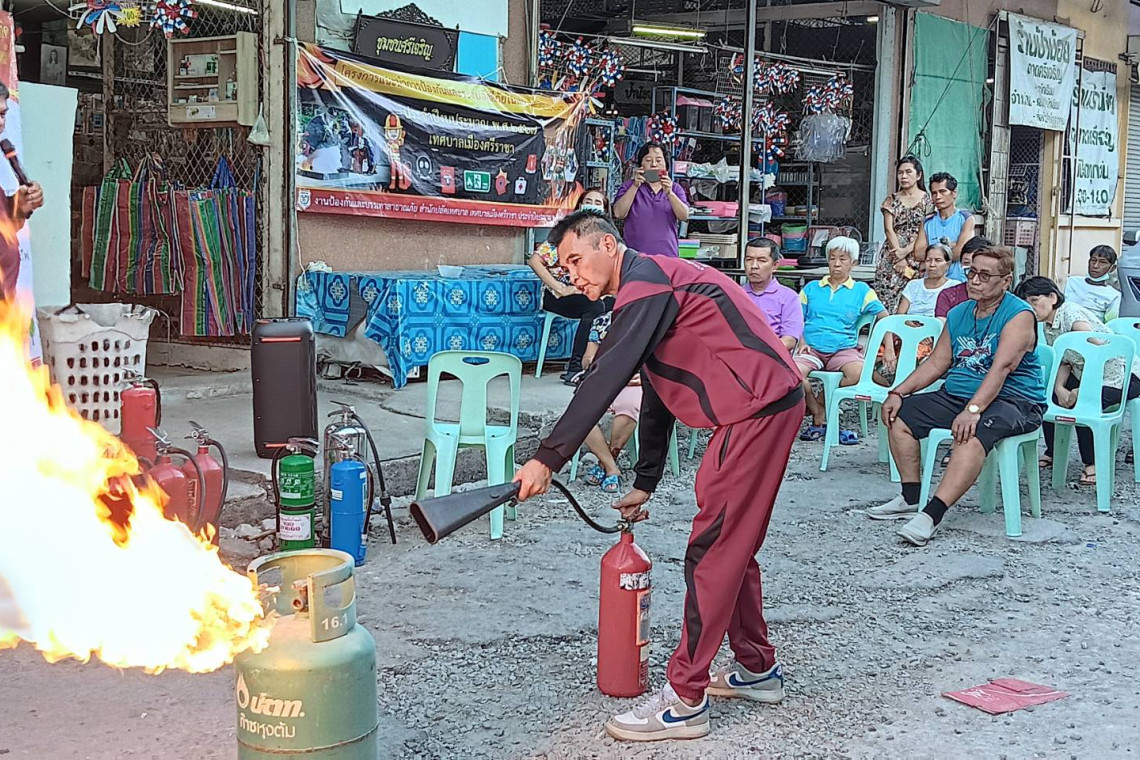 โดยมีการนำเจ้าหน้าที่ดับเพลิงออกไปให้ความช่วยเหลือแก่ชาวบ้านในแต่ละชุมชน โดยให้ความรู้ด้านการดับไฟที่ไหม้จากหัวถังแก๊สหุงต้ม หากมีการรั่วและเกิดไฟไหม้ขึ้นมา เช่น การใช้มือปิดวาล์วถัง การใช้ผ้าชุบน้ำดับ หรือหากไหม้ในกระทะควรทำเช่นไร โดยเน้นย้ำให้ชาวบ้านต้องตั้งสติเสมอหากเกิดเหตุ พร้อมทั้งรีบแจ้งทางเจ้าหน้าที่ดับเพลิงทันที เพื่อจะได้เข้าระงับเหตุได้ทันไม่ให้ลุกลามใหญ่โต