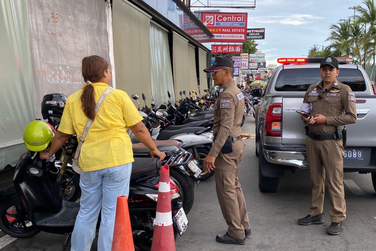 จากการลงพื้นที่ไปตามถนนเลียบชายหาดพัทยา และถนนพัทยาสายสอง ซึ่งเป็นจุดที่มีการร้องเรียนเข้ามาเป็นจำนวนมาก โดยพบผู้ประกอบการรถเช่าบางราย เอารถจักรยานยนต์ หลากหลายยี่ห้อและขนาดใหญ่ มาจอดทับเส้นขาว-แดง และจุดห้ามจอด เรียงรายเป็นแนวยาวนับ 10 คัน ต่อ 1 จุด เบื้องต้นได้มีการจับกุมผู้ประกอบการรถเช่าหลายราย และรถของประชาชนทั่วไปอีกบางส่วน ซึ่งตำรวจได้ทำการล็อคล้อรถผู้ฝ่าฝืน พร้อมกับออกใบสั่งเปรียบเทียบปรับตามกฏหมาย พรบ.จราจร