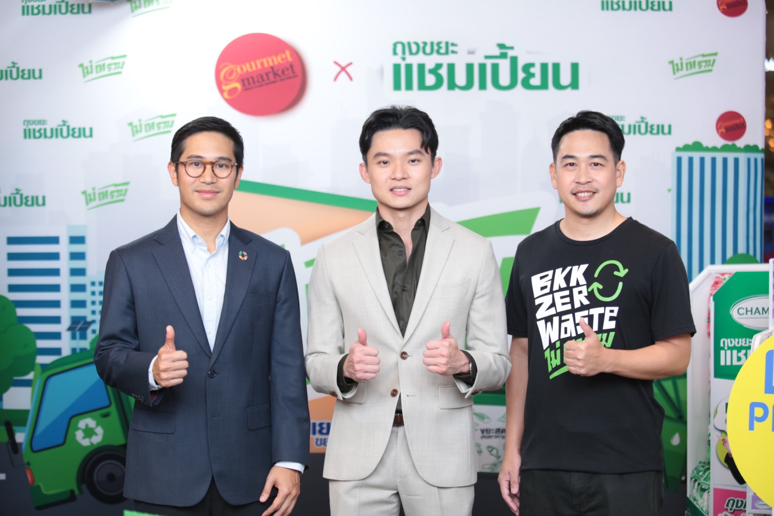 ด้าน กูร์เมต์ มาร์เก็ต พรีเมียมซูเปอร์มาร์เก็ตระดับเวิลด์คลาส ในเครือเดอะมอลล์ กรุ๊ป พันธมิตรที่ร่วมมือกับแชมเปี้ยน มาตลอดตั้งแต่ผลิตภัณฑ์ถุงขยะแยกประเภท 4 สีนั้น ครั้งนี้ คุณพลอยชมพู อัมพุช ผู้อำนวยการใหญ่บริหารสินค้าซูเปอร์มาร์เก็ต บริษัท เดอะมอลล์ กรุ๊ป จำกัด ตอกย้ำแนวคิดการพัฒนาขององค์กรอย่างยั่งยืน เห็นความสำคัญของการสร้างความตระหนักและการให้ความรู้เกี่ยวกับการแยกขยะอย่างถูกต้อง ซึ่งเป็นจุดเริ่มต้นสำคัญในการช่วยลดปริมาณขยะสู่สิ่งแวดล้อม จึงมีความยินดีอย่างยิ่งให้กูร์เมต์ มาร์เก็ตเป็นพื้นที่ในการรณรงค์ขั้นตอนการแยกขยะในครัวเรือน รวมถึงเป็นช่องทางการกระจายสินค้า ถุงขยะแชมเปี้ยนสีขาว แบบมีหูผูก รุ่นไม่เทรวม ให้กับลูกค้ากูร์เมต์ มาร์เก็ตได้ใช้เป็นกลุ่มแรก เพื่อร่วมกันแยกขยะอย่างถูกต้องและสะดวกยิ่งขึ้น โดยสามารถหาซื้อถุงขยะสีขาวพร้อมโปรโมชั่นดี ๆ ได้ที่กูร์เมต์ มาร์เก็ตทุกสาขา