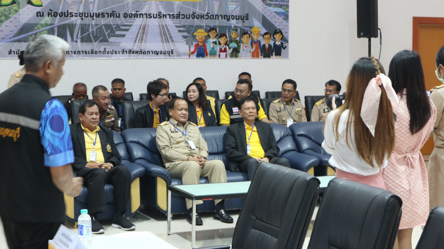 รวมถึง ร.ต.อ.พงศ์บัณฑิต ปิ่นสุวรรณ ผู้อำนวยการสำนักงานคณะกรรมการการเลือกตั้ง ประจำจังหวัดกาญจนบุรี พ.จ.อ.วิรัช รำจวนเกียรติ รอง ผอ.สนง.กกต.จ.กาญจนบุรี นายนิรันดร์ บุญราช หัวหน้ากลุ่มงานการจัดการเลือกตั้งและการมีส่วนร่วม นายฤทธิรงค์ แก่นจันทร์ หัวหน้ากลุ่มงานสืบสวนสอบสวนและพรรคการเมือง นายปิยะกุล ชูเกต พนักงานสืบสวนและไต่สวนปฏิบัติการ นายธนกฤต สนองสิทธิ์ นักประชาสัมพันธ์ชำนาญการนายเสนอ ชูจันทร์ ผู้ตรวจการเลือกตั้ง และทีมงานคณะกรรมการการเลือกตั้งประจำจังหวัดกาญจนบุรี ให้การต้อนรับ