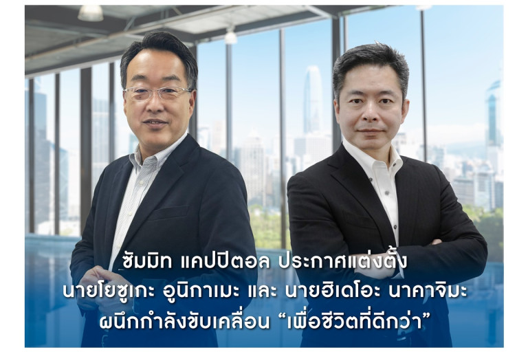บริษัท ซัมมิท แคปปิตอล ลีสซิ่ง จำกัด ผู้ให้บริการสินเชื่อเช่าซื้อรถจักรยานยนต์ชั้นนำของไทย ประกาศแต่งตั้ง นายโยซูเกะ อูนิกาเมะ ให้ดำรงตำแหน่งประธานเจ้าหน้าที่บริหาร (CEO) และนายฮิเดโอะ นาคาจิมะ ดำรงตำแหน่งประธานบริษัท (President) ผนึกกำลังขับเคลื่อน “เพื่อชีวิตที่ดีกว่า” (Ride for Better) มั่นใจในวิสัยทัศน์การดำเนินธุรกิจเพื่อประโยชน์ของสังคมส่วนรวม พร้อมนำพาองค์กรและสังคมเติบโตไปด้วยกันอย่างยั่งยืน