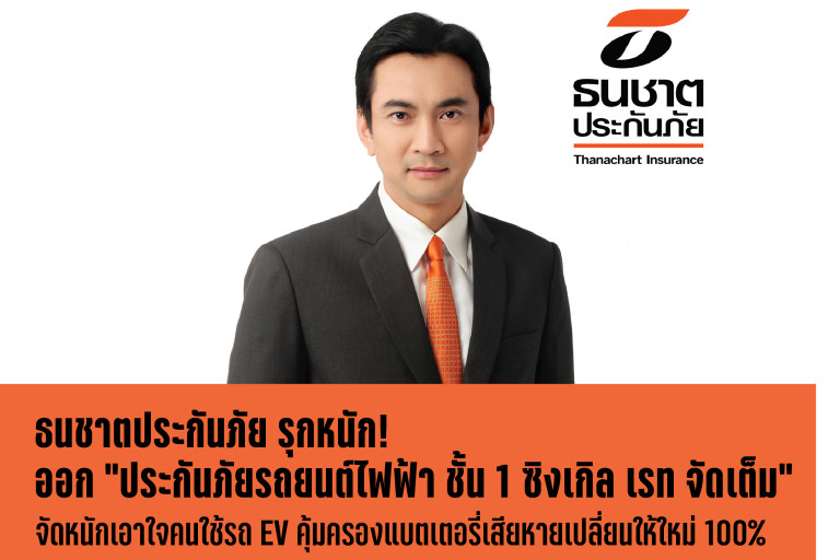 ธนชาตประกันภัย เดินหน้าขับเคลื่อนประกันภัยสู่ความยั่งยืน ส่งเสริมการใช้พลังงานเพื่อสิ่งแวดล้อม เปิดตัว “ประกันภัยรถยนต์ไฟฟ้า ชั้น 1 ซิงเกิล เรท จัดเต็ม” ตามเกณฑ์ใหม่ของนายทะเบียน คปภ. ชูจุดเด่นคุ้มครองรถยนต์ครอบคลุมครบทุกภัย พร้อมจัดหนักคุ้มครองแบตเตอรี่ หากเสียหายเปลี่ยนให้ใหม่ 100% โดยไม่หักค่าเสื่อมสำหรับรถอายุไม่เกิน 5 ปี แถมคุ้มครองเครื่องชาร์จรถยนต์ไฟฟ้าส่วนบุคคล (Wall Charger) สูงสุด 50,000 บาท/ครั้ง นอกจากนี้ ยังมีบริการช่วยเหลือฉุกเฉินบนท้องถนน (Roadside Assistance) ตลอด 24 ชั่วโมง ตอบโจทย์ความต้องการพื้นฐานของผู้ใช้รถยนต์ไฟฟ้า และสิทธิพิเศษต่างๆ จากพันธมิตรเติมเต็ม EV Ecosystem การันตีคุ้มค่าที่สุดในอุตสาหกรรมประกันภัยรถยนต์ มั่นใจดันยอดขายประกันภัยรถยนต์ไฟฟ้าพุ่งแรงตามเป้าหมาย