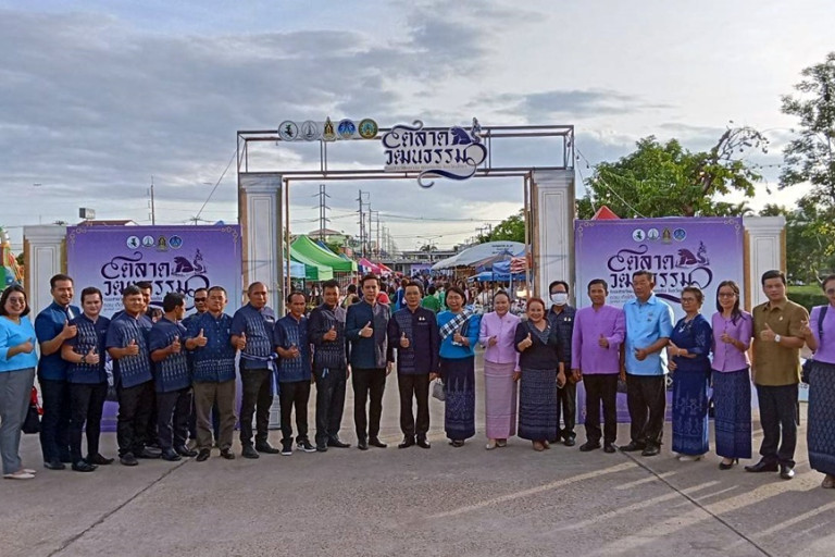 วันที่ 17 มิ.ย.67 ที่สนามที่ว่าการอำเภอเลิงนกทา จังหวัดยโสธร นายชรินทร์ ทองสุข ผู้ว่าราชการจังหวัดยโสธร มอบหมายให้ นายวรเทพ ทองน้อย นายอำเภอเลิงนกทา เป็นประธานเปิดโครงการตลาดวัฒนธรรม ถนนสายวัฒนธรรม ถนนคนเดิน จังหวัดยโสธร ประจำปีงบประมาณ พ.ศ. 2567 ครั้งที่ 5 ตอน "เทิดไท้ราชินี ภูษาศิลป์ จากท้องถิ่นสู่สากล" โดยได้บูรณาการร่วมกับเทศบาลตำบลสามแยก ในกิจกรรมถนนคนเลิงในการนี้ นางสาววาสนา ไชยพรรณา วัฒนธรรมจังหวัดยโสธร และบุคลากรสำนักงานวัฒนธรรมจังหวัดยโสธร พร้อมด้วยหัวหน้าส่วนราชการ ได้เข้าร่วมพิธีเปิดงานในครั้งนี้ด้วย