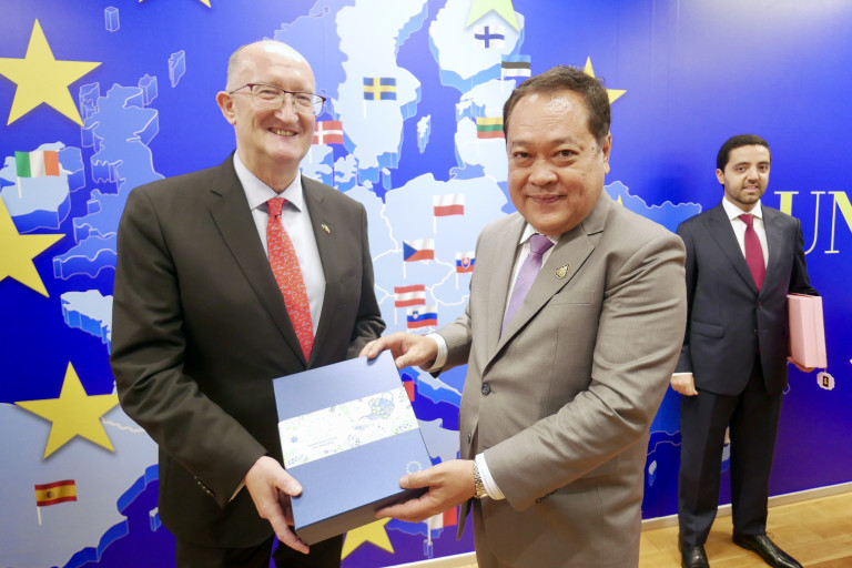 เมื่อวันที่ 17 มิ.ย.67 คณะเอกอัครราชทูตประเทศสมาชิกสหภาพยุโรป 19 ประเทศ นำโดย นายเดวิด เดลี เอกอัครราชทูตสหภาพยุโปประจำประเทศไทย ให้การต้อนรับ พันตำรวจเอก ทวี สอดส่อง รัฐมนตรีว่าการกระทรวงยุติธรรม ในฐานะหัวหน้าพรรคประชาชาติ ณ อาคารแอทธินี ทาวเวอร์ ถนนวิทยุ แขวงลุมพินี เขตปทุมวัน กรุงเทพฯ โดยทั้งสองฝ่ายได้แลกเปลี่ยนมุมมองต่อสถานการณ์ในภูมิภาค และระหว่างประเทศที่สนใจร่วมกัน