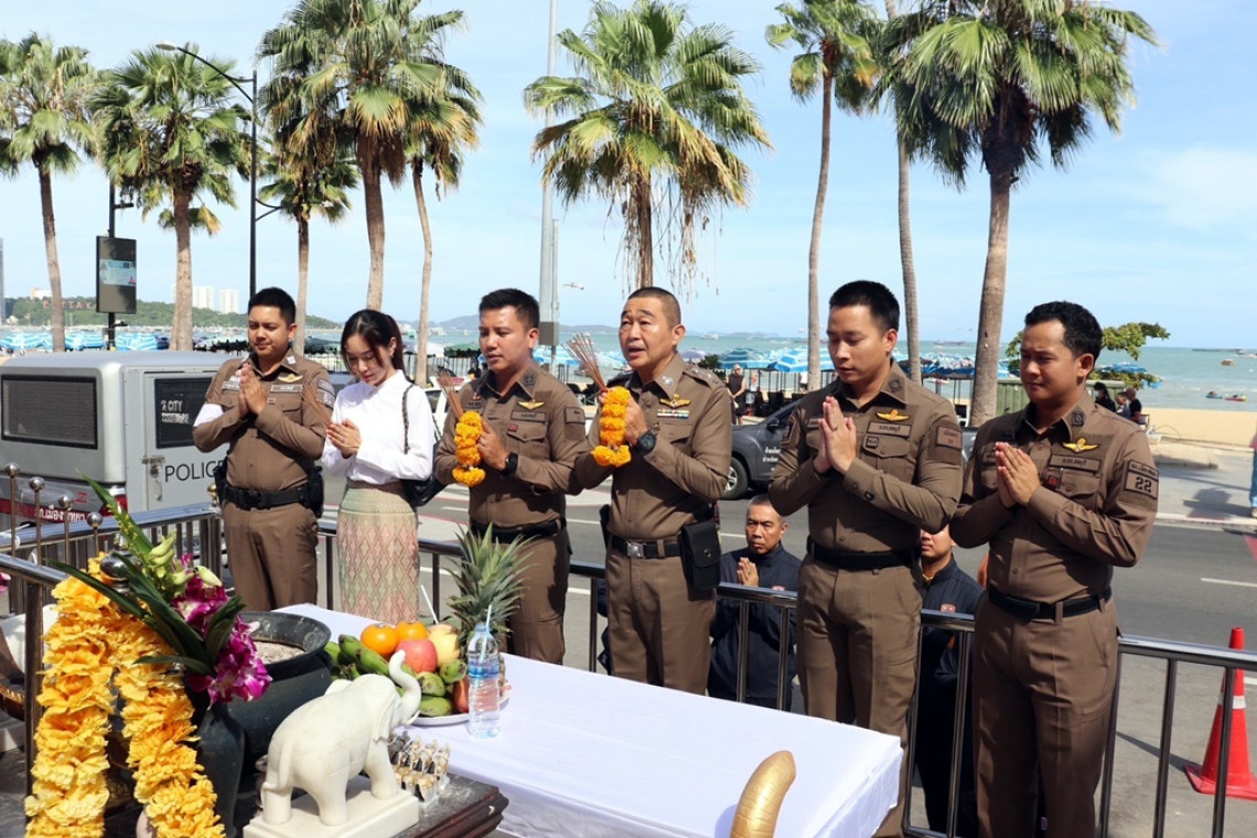 สำหรับ พิธีทำบุญในครั้งนี้ เริ่มจากไหว้พระขอพรบริเวณศาลพระพรหม ศาลตายาย และอนุสาวรีย์พระเจ้าบรมวงศ์เธอ กรมหลวงชุมพรเขตอุดมศักดิ์ บริเวณหน้าสภ.เมืองพัทยา เพื่อความเป็นสิริมงคล ก่อนจะนิมนต์พระสงฆ์ จำนวน 9 รูป ขึ้นไปในห้อง ประชุม ศปก.สภ.เมืองพัทยา ชั้น 3 เพื่อสวดเจริญพระพุทธมนต์ และถวาย สังฆทาน ดอกไม้ธูปเทียน และภัตตาหารเพล เพื่อความเป็นสิริมงคล แก่สถานีตำรวจ และตำรวจทุกสายงาน